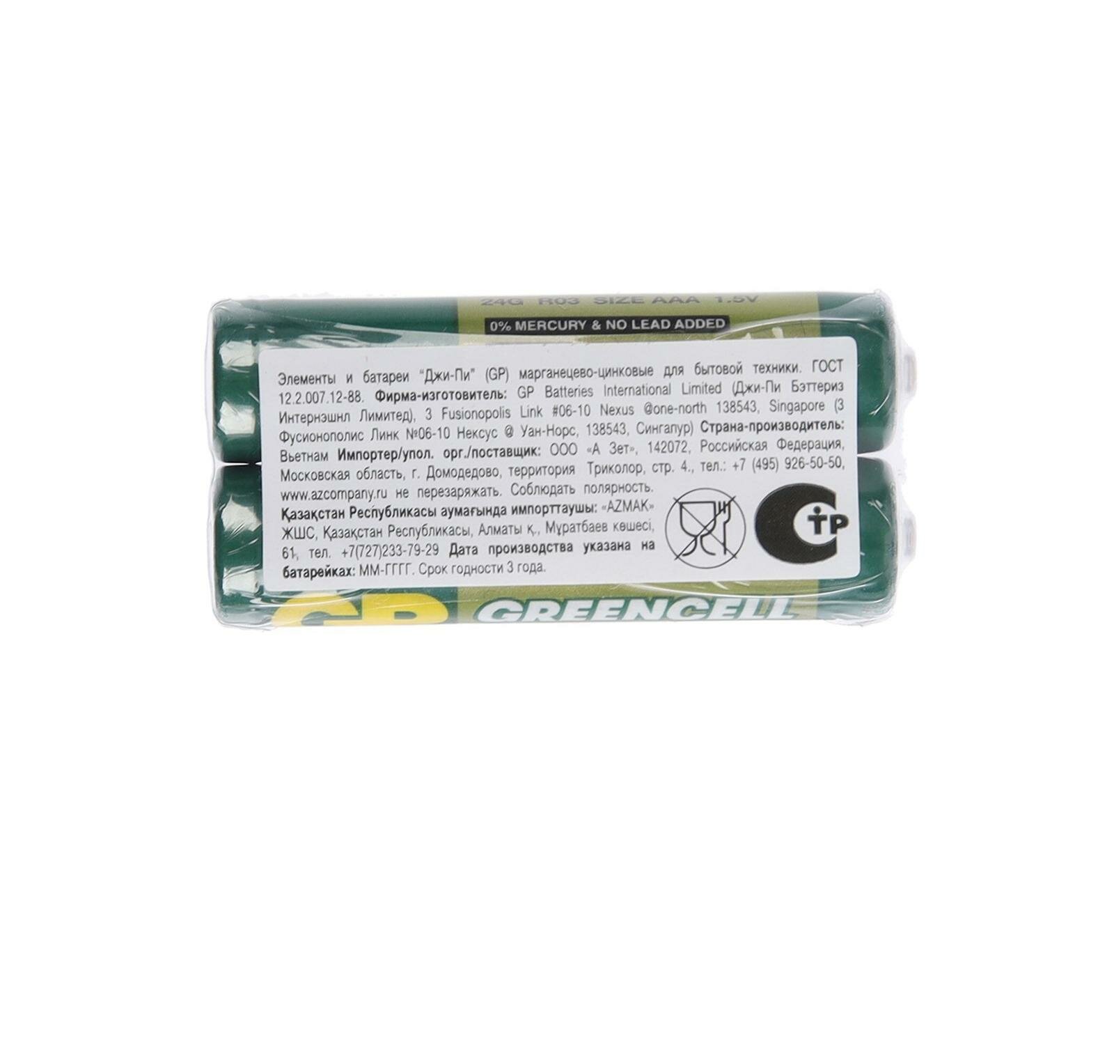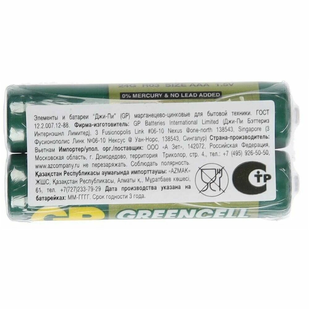GPBI Батарейка GP Greencell 24G Тип AAA, 2 шт