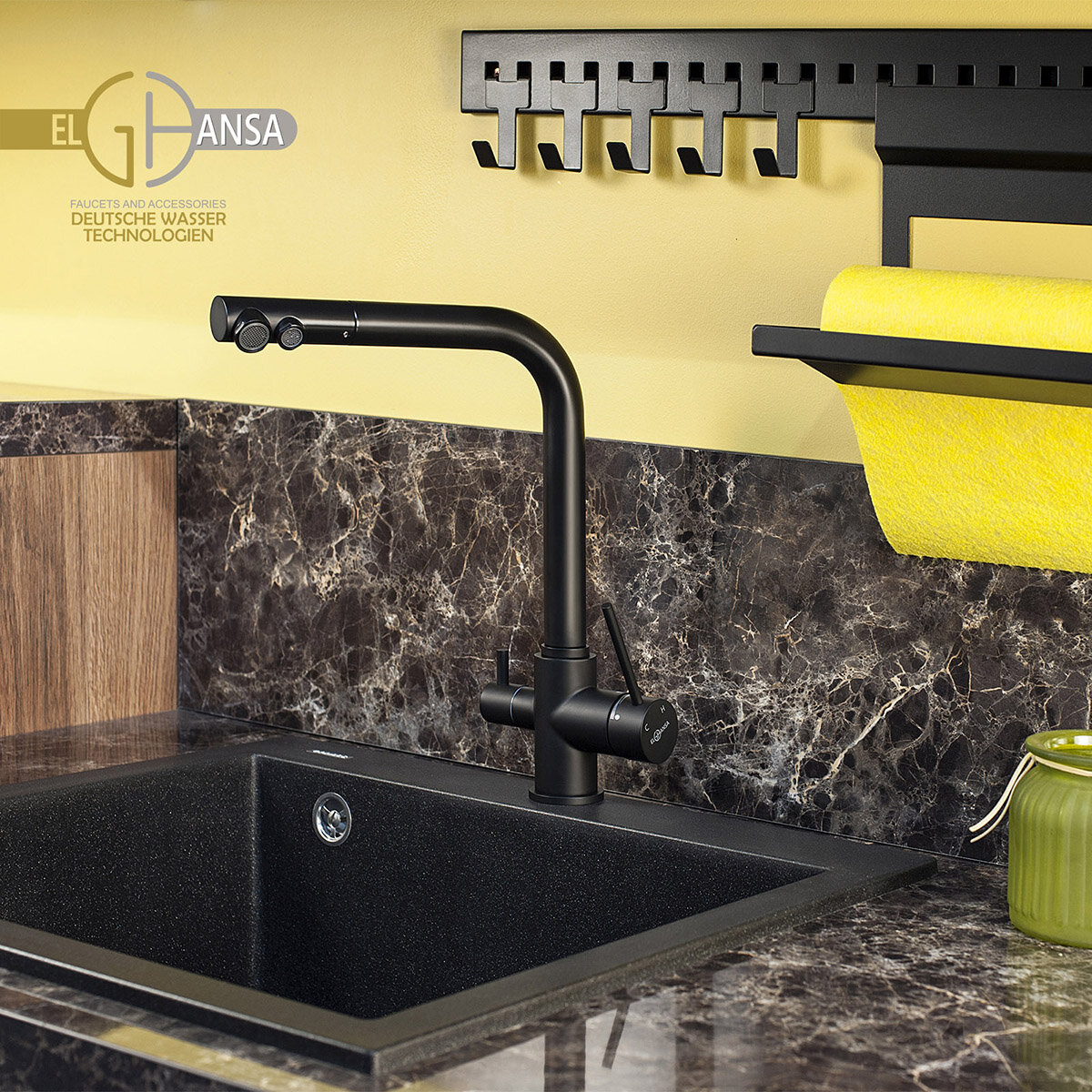 Elghansa Смеситель для кухонной мойки Elghansa Kitchen Pure Water 56A5216-Black с краном для питьевой воды