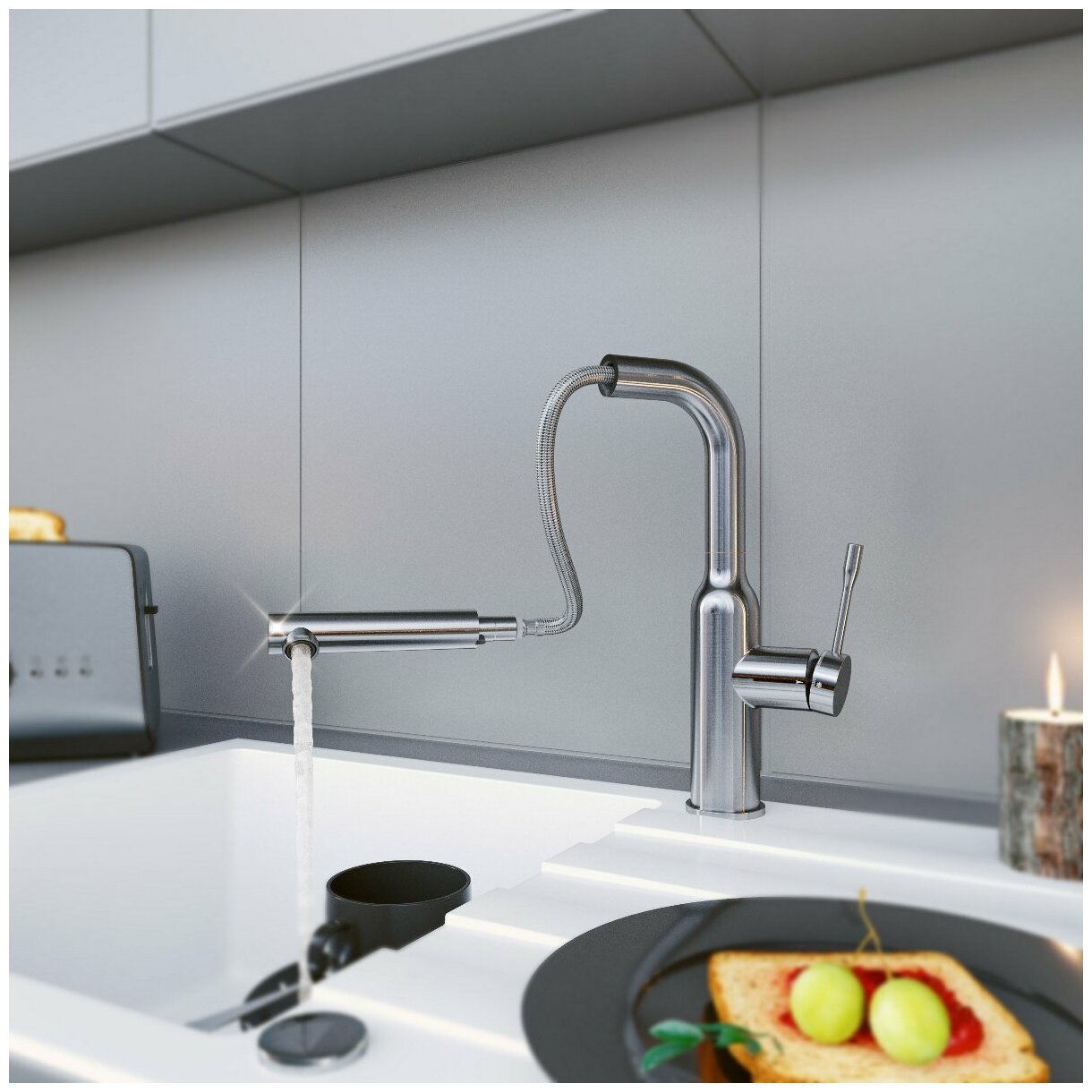 Смеситель Elghansa KITCHEN 56A1926-Steel для кухни однорычажный с выдвижной лейкой