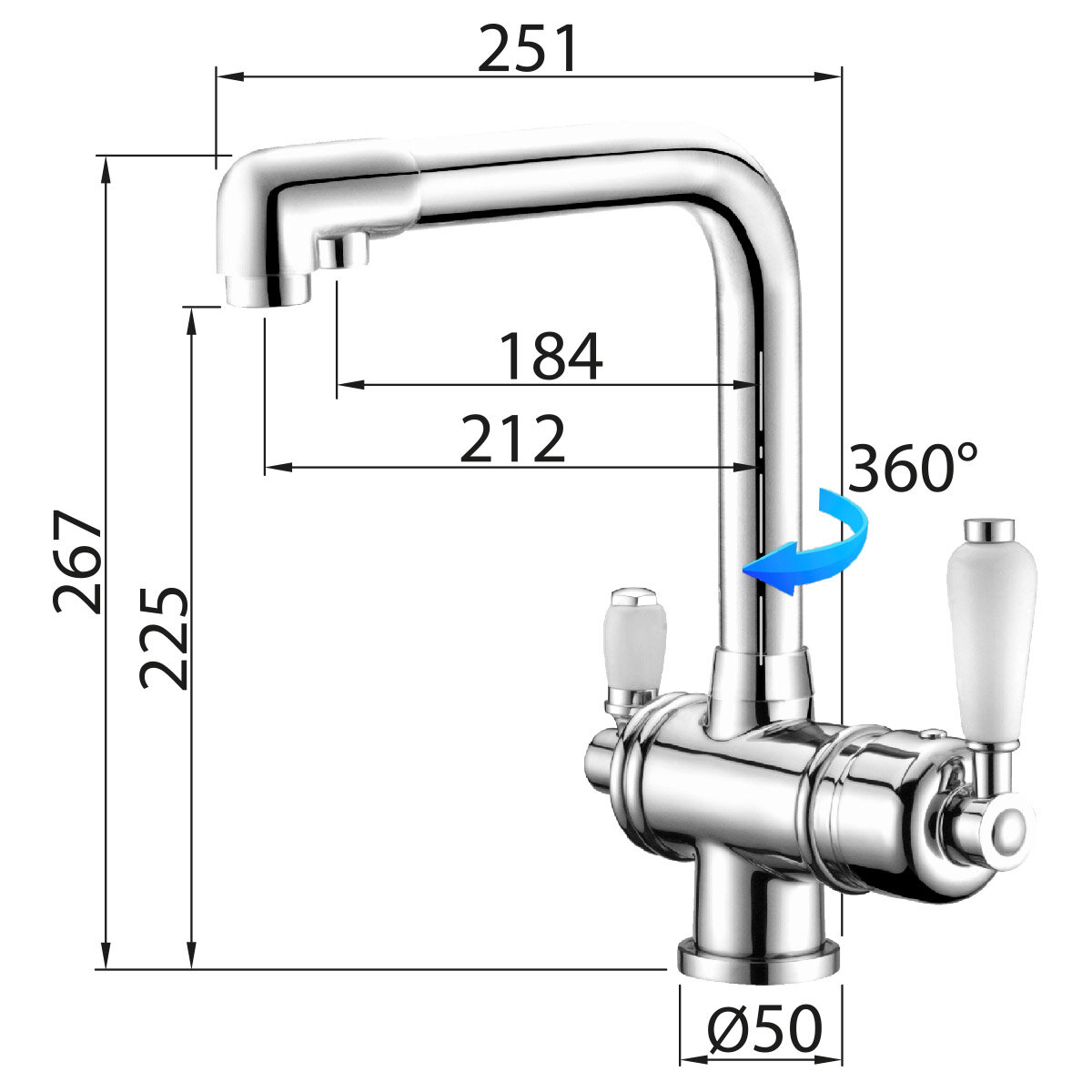 | Комплектация | Смеситель, излив поворотный D=24 мм высота 22 см, переходник для шланга фильтра, набор крепежа для установки смесителя, 2 гибких шланга 40 см для подвода воды |