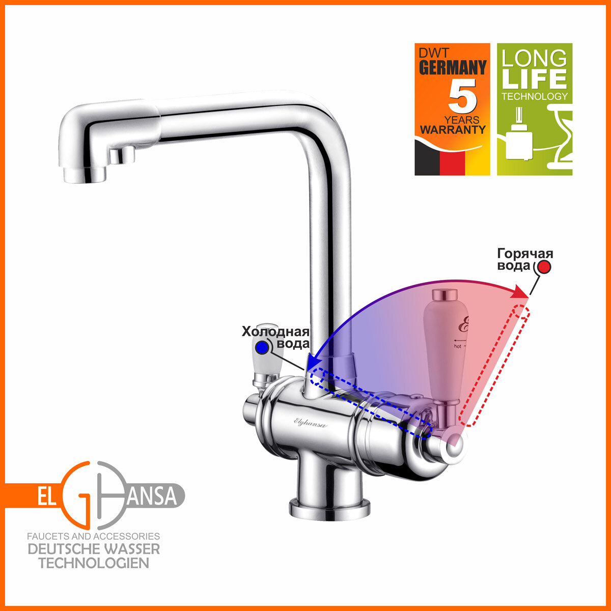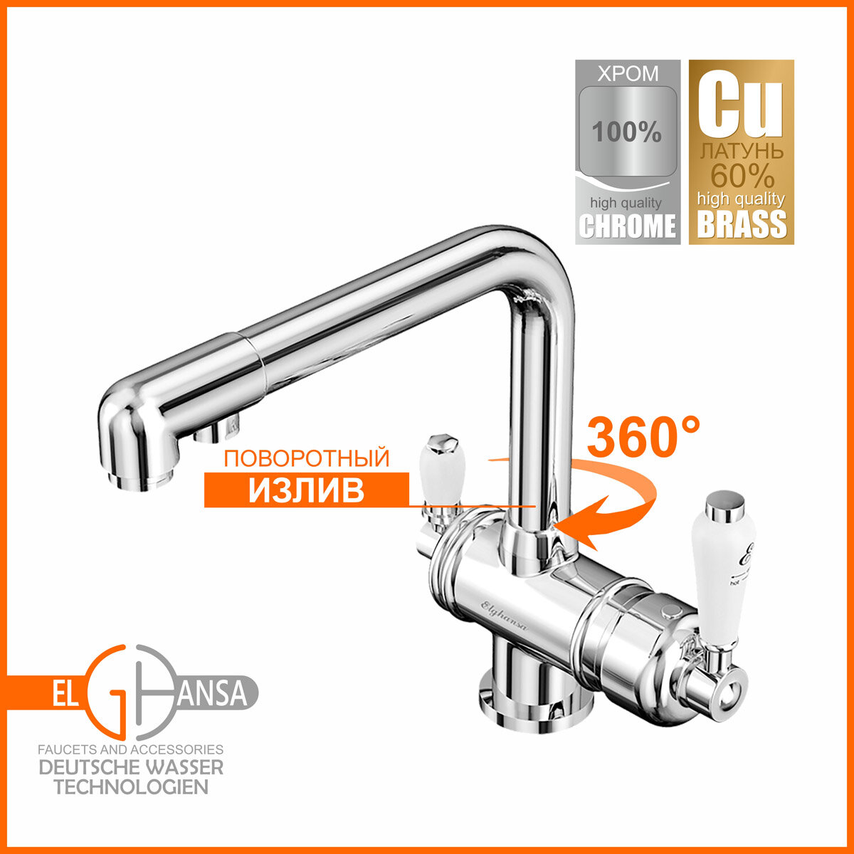 Смеситель однорычажный для кухни (под фильтр) для питьевой воды Elghansa KITCHEN Pure Water 56A5740 латунь, хром интересное:
