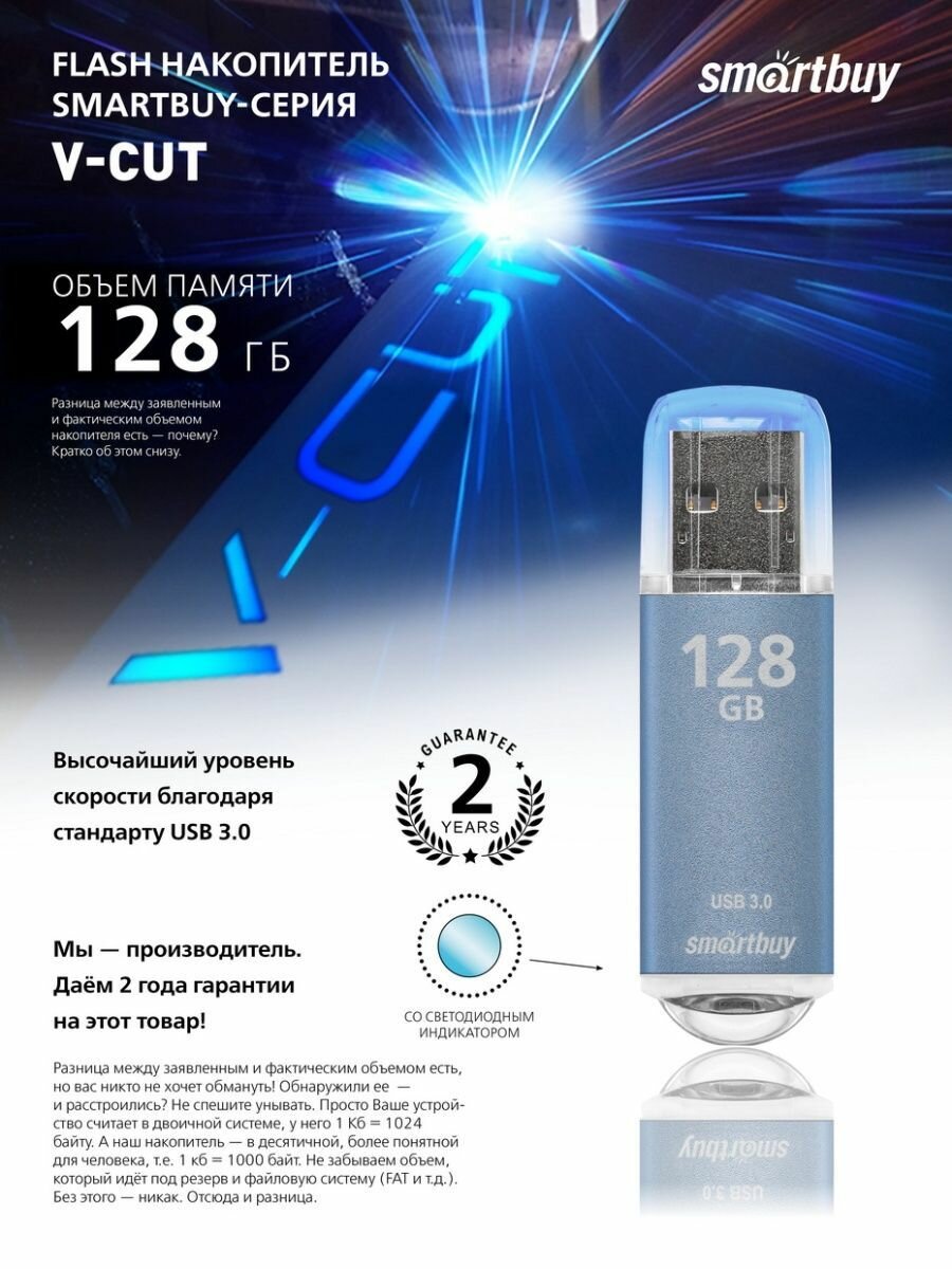 Купить USB флешка Smartbuy 128Gb V-Cut blue USB 3.0