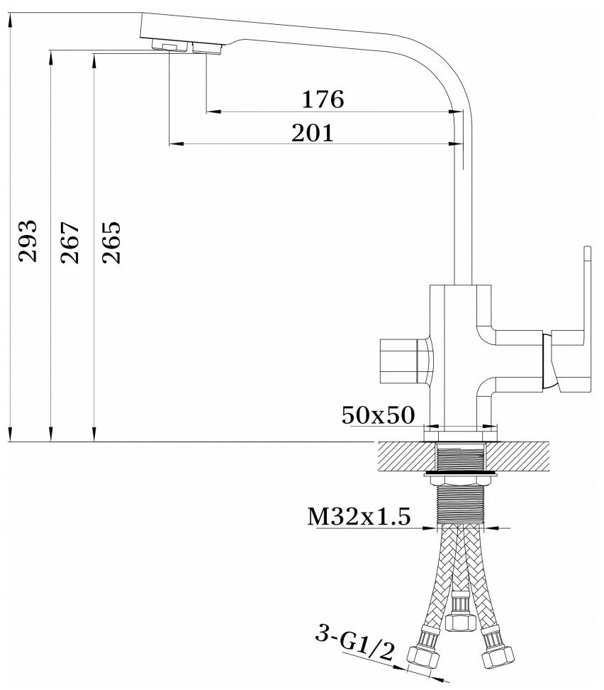 Смеситель для кухни GANZER GZ 12025A с подключением к фильтру питьевой воды