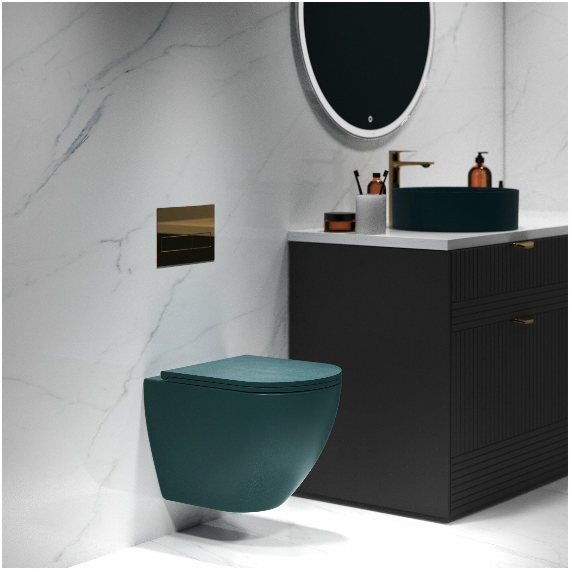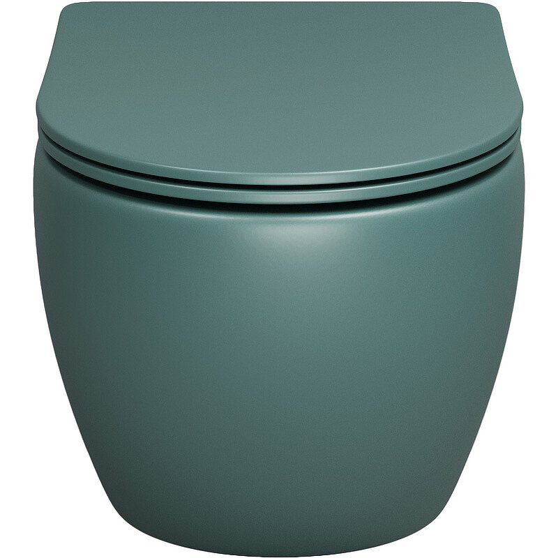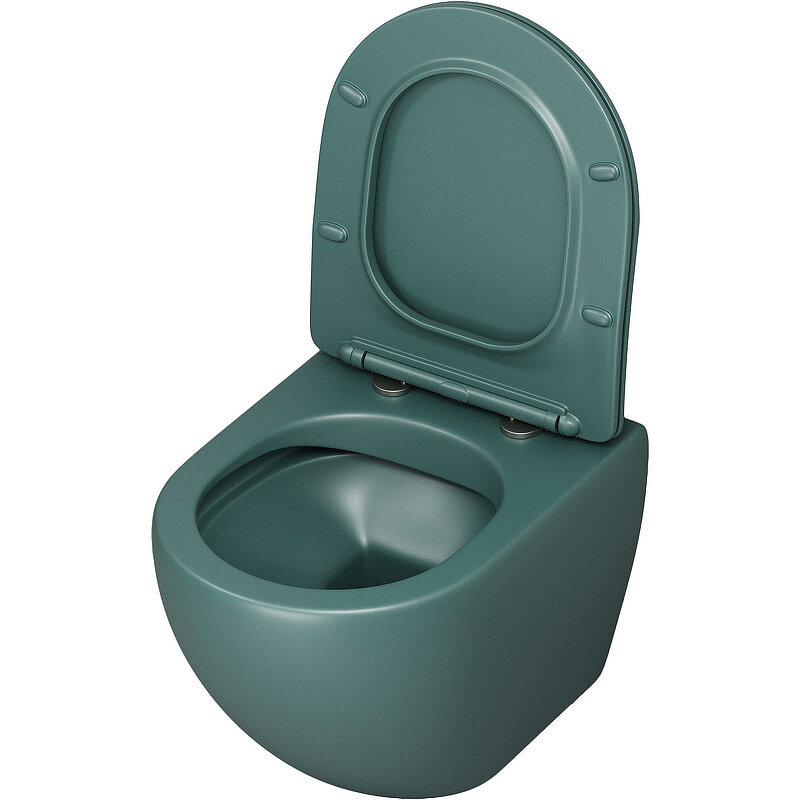 Купить Унитаз подвесной безободковый с тонкой крышкой Grossman GR-4455OLMS зеленый матовый (485*360*375)