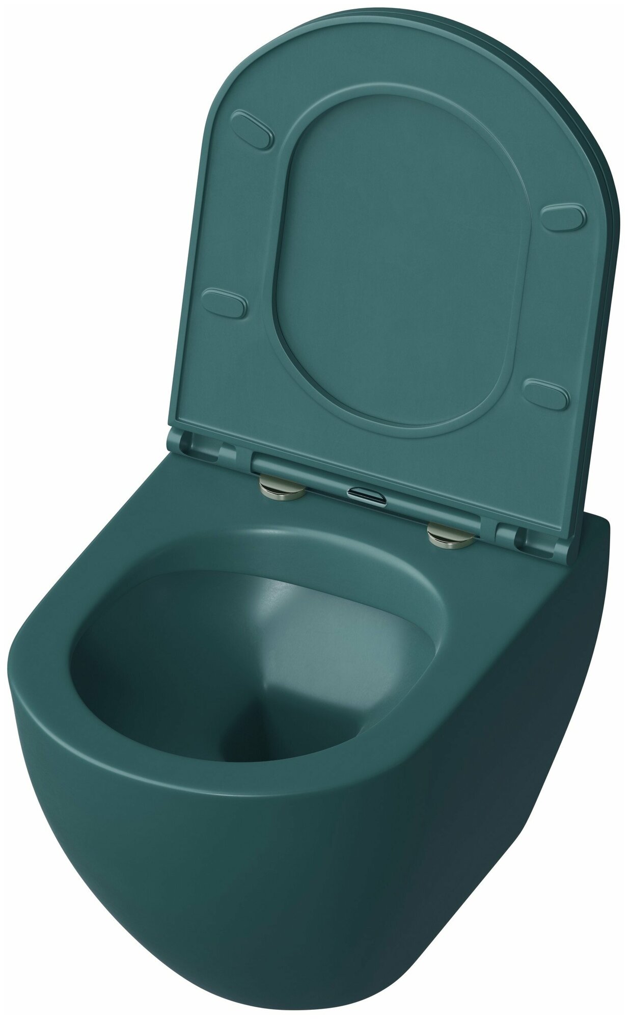 Унитаз подвесной безободковый Grossman с тонким сиденьем-микролифт, зеленый матовый (GR-4455OLMS)