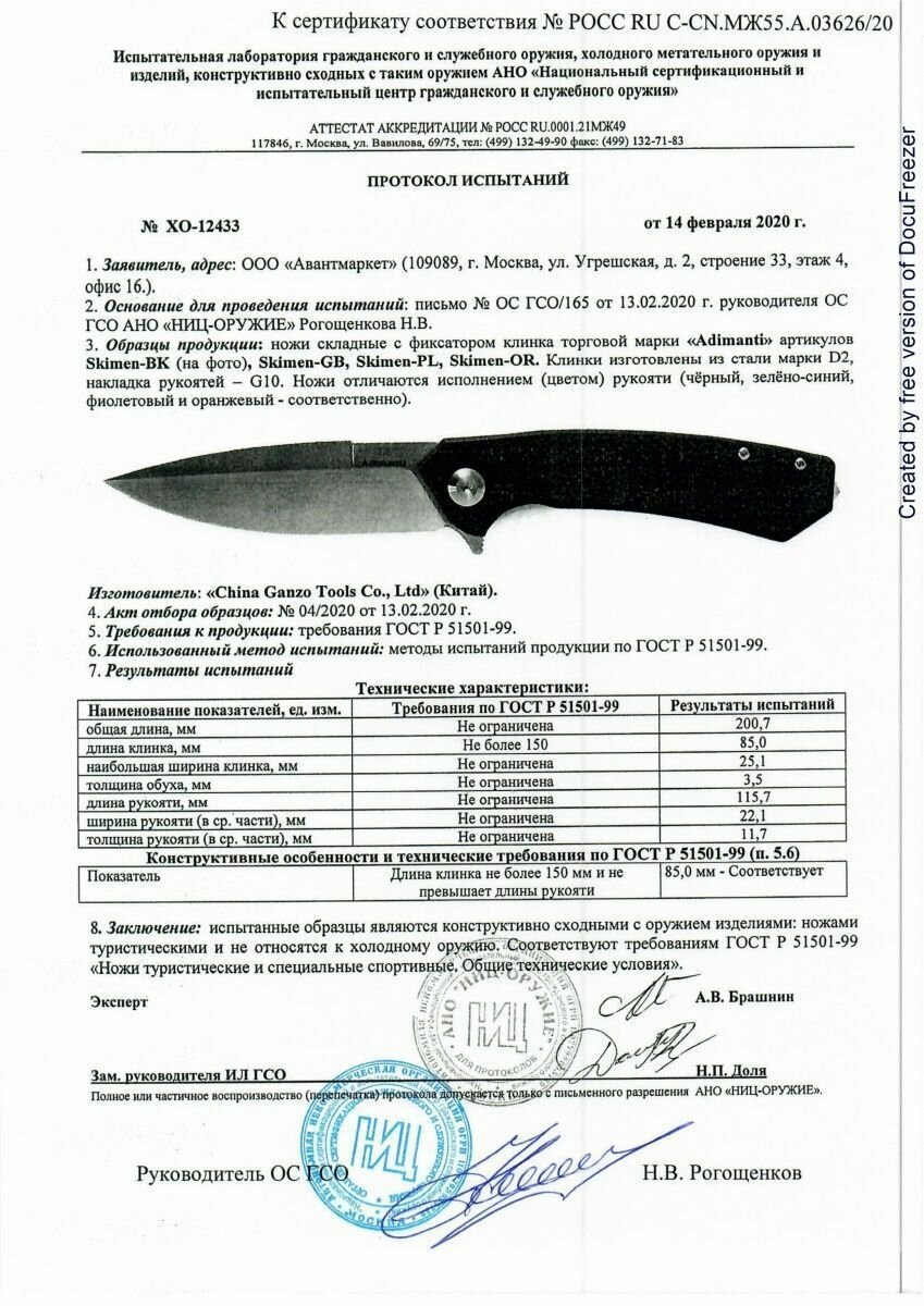 | Материал рукояти | стеклотекстолит G10 |