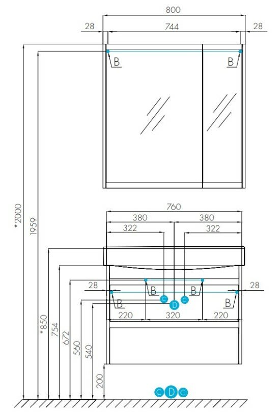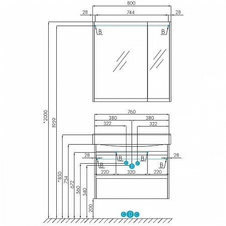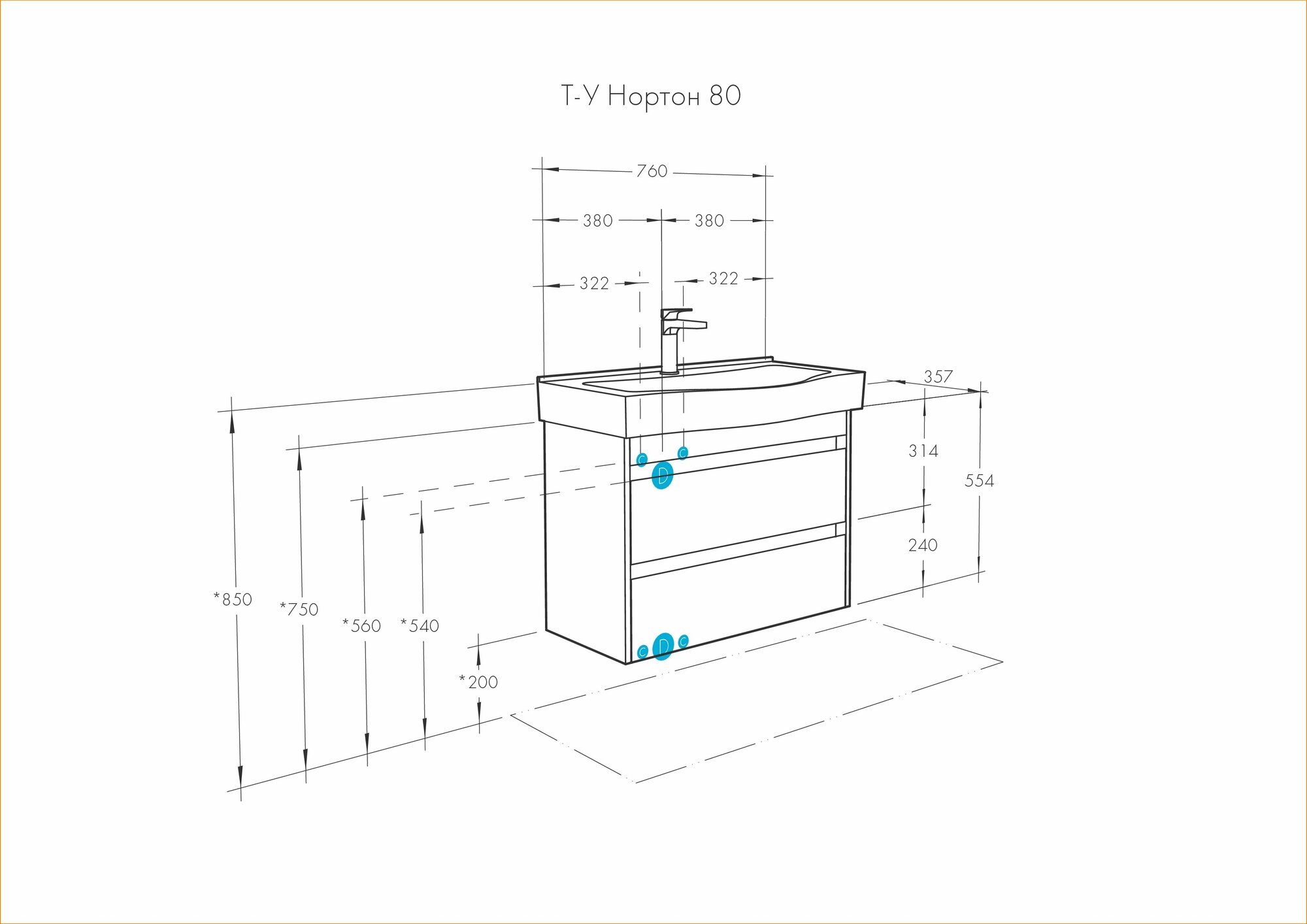 1A2489K0NT010 Набор: 1A248901NT010 Тумба-умывальник Нортон 80/ 1WH302422 раковина Беверли 80
