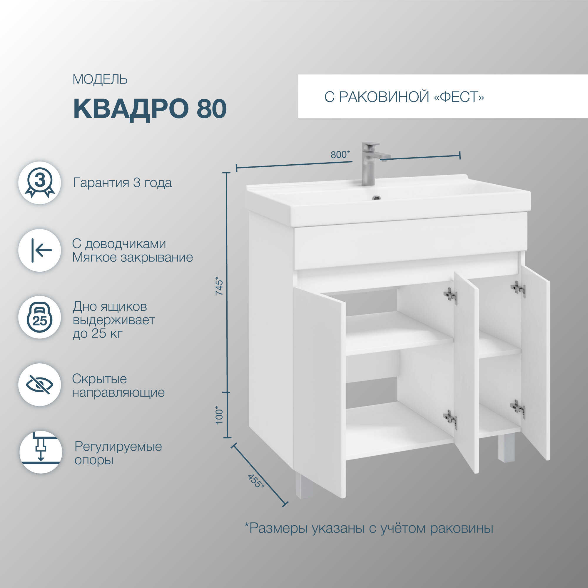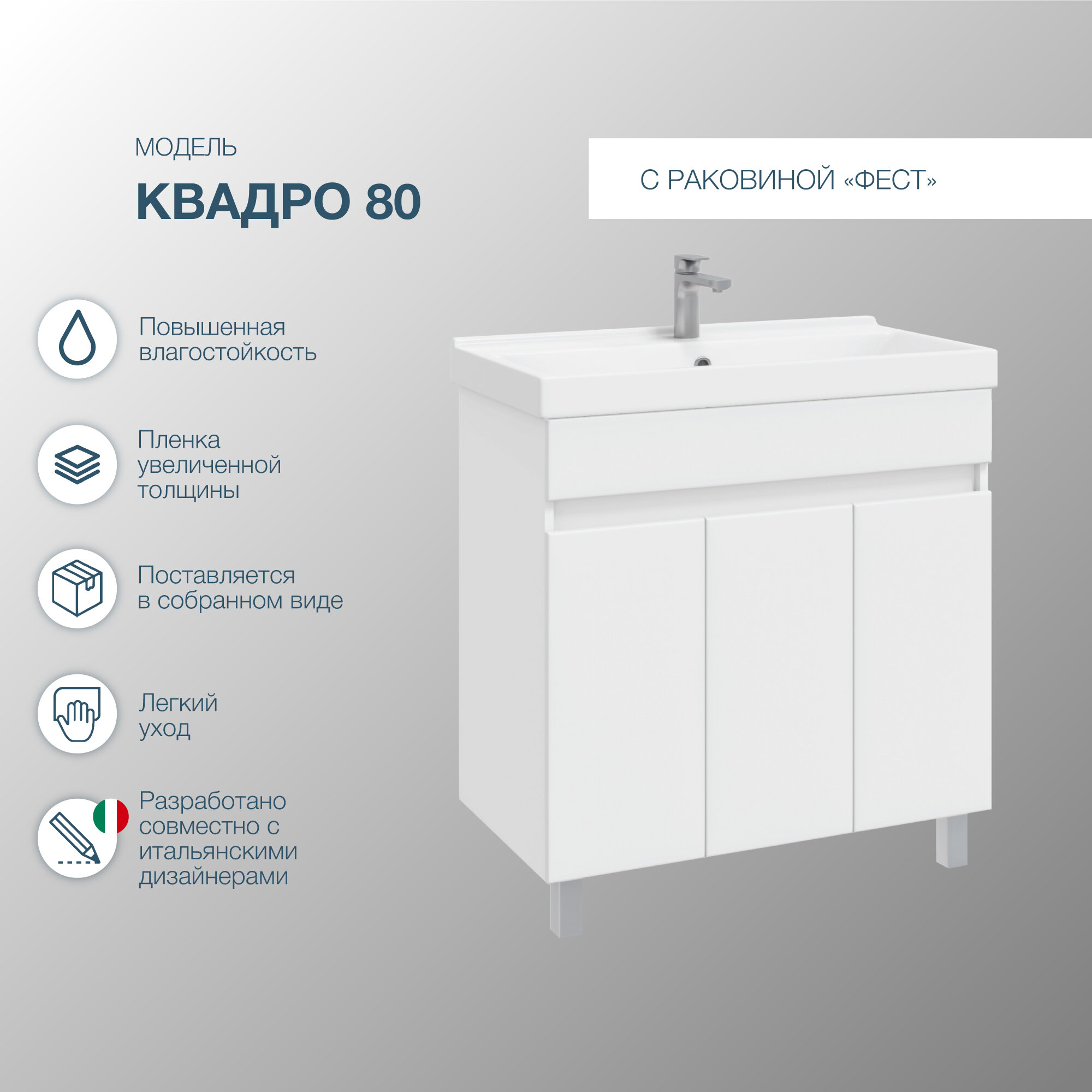 Тумба напольная SanStar Квадро 80 с раковиной Фест 80 (комплект) для ванной комнаты, белая интересное: