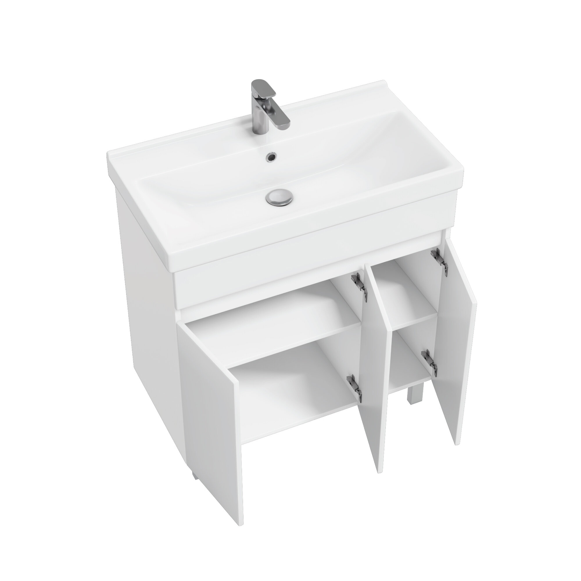 Купить Тумба напольная SanStar Квадро 80 с раковиной Фест 80 (комплект) для ванной комнаты, белая