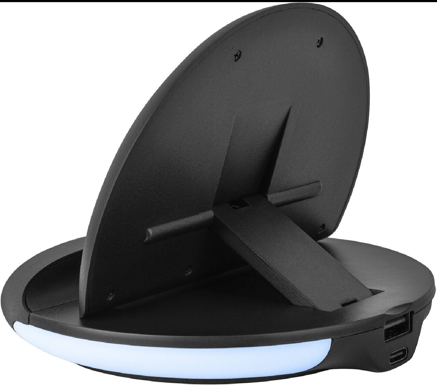 + беспроводная зарядка работает + есть подсветка + для не очень больших телефонов можно класть на подставку как вертикально, так и горизонтально |