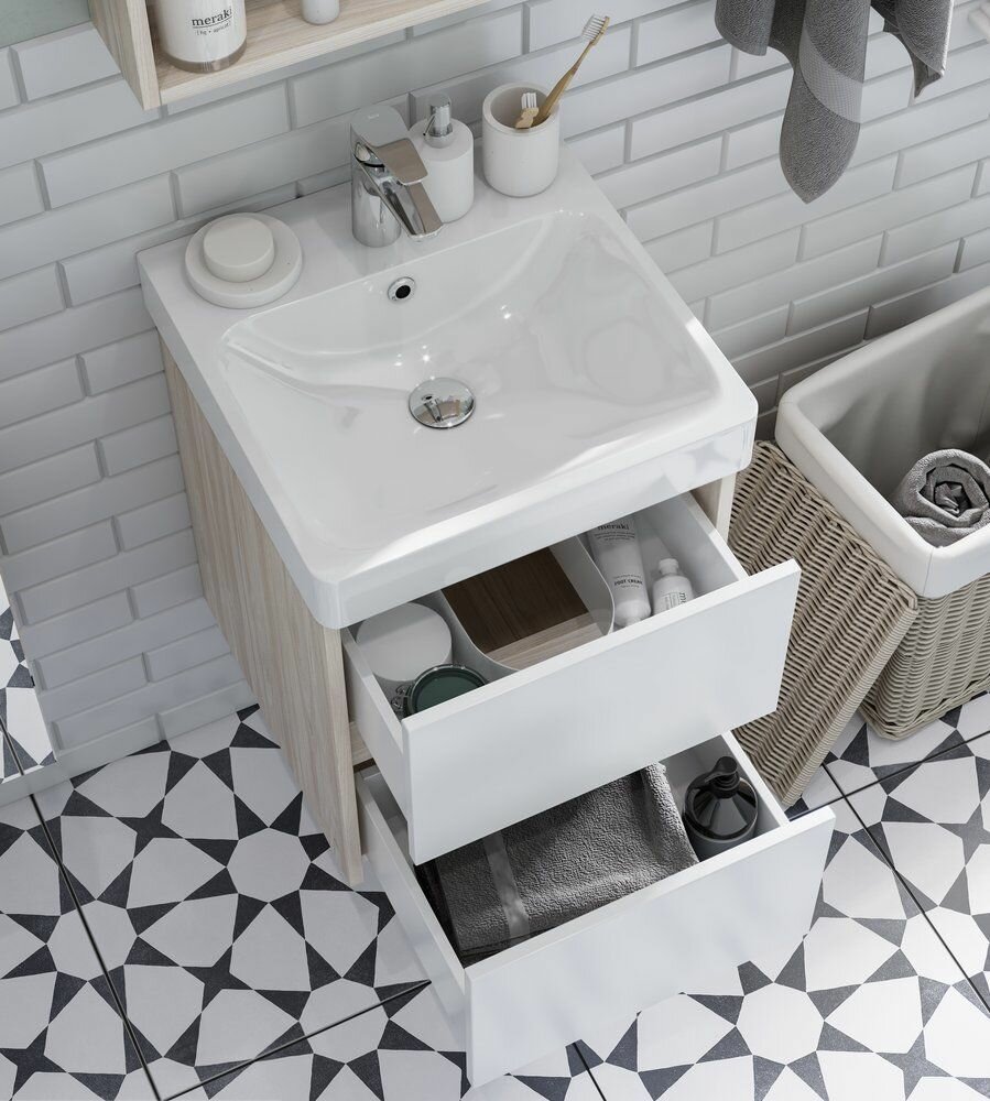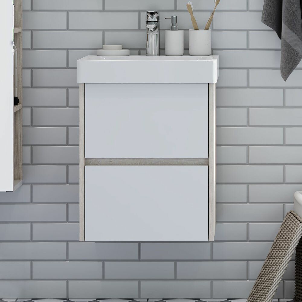 Тумба с раковиной Aquaton Сканди 45 1A2516K0SDB20 белая/дуб верона