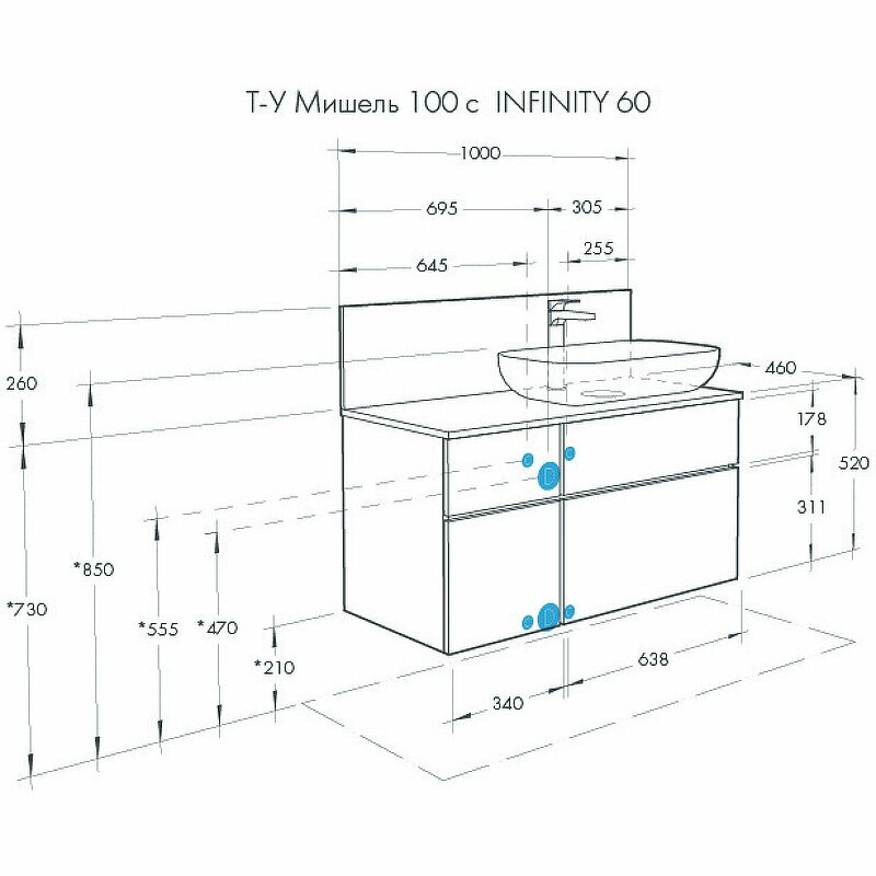 | Комплектация | 2 выдвижных ящика; без раковины и смесителя |