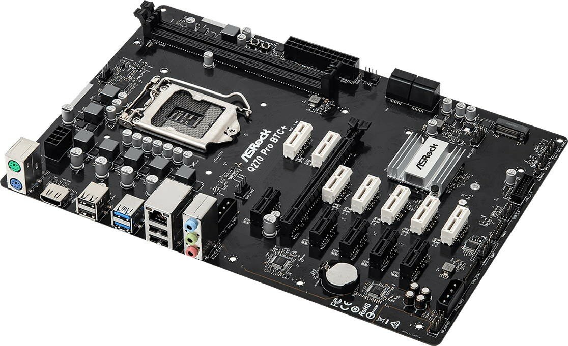 ASRock Q270 Pro BTC+ LGA1151 (7th и 6th Generation Intel® Core™ i5/i3/Pentium®/Celeron® Processors) 2xDDR4 4xSATA RAID M.2 ATX