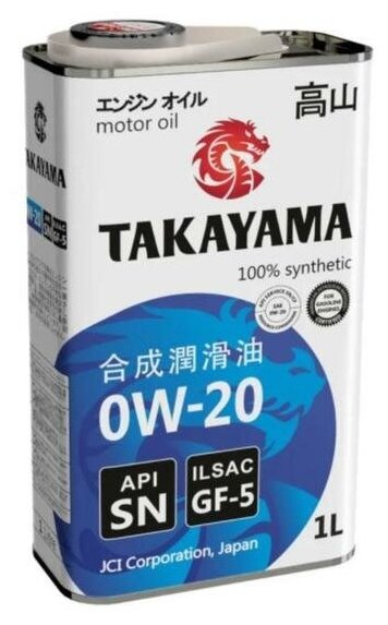 Моторное масло TAKAYAMA SAE 0W-20, ILSAC GF-5, API SN Синтетическое 1 л