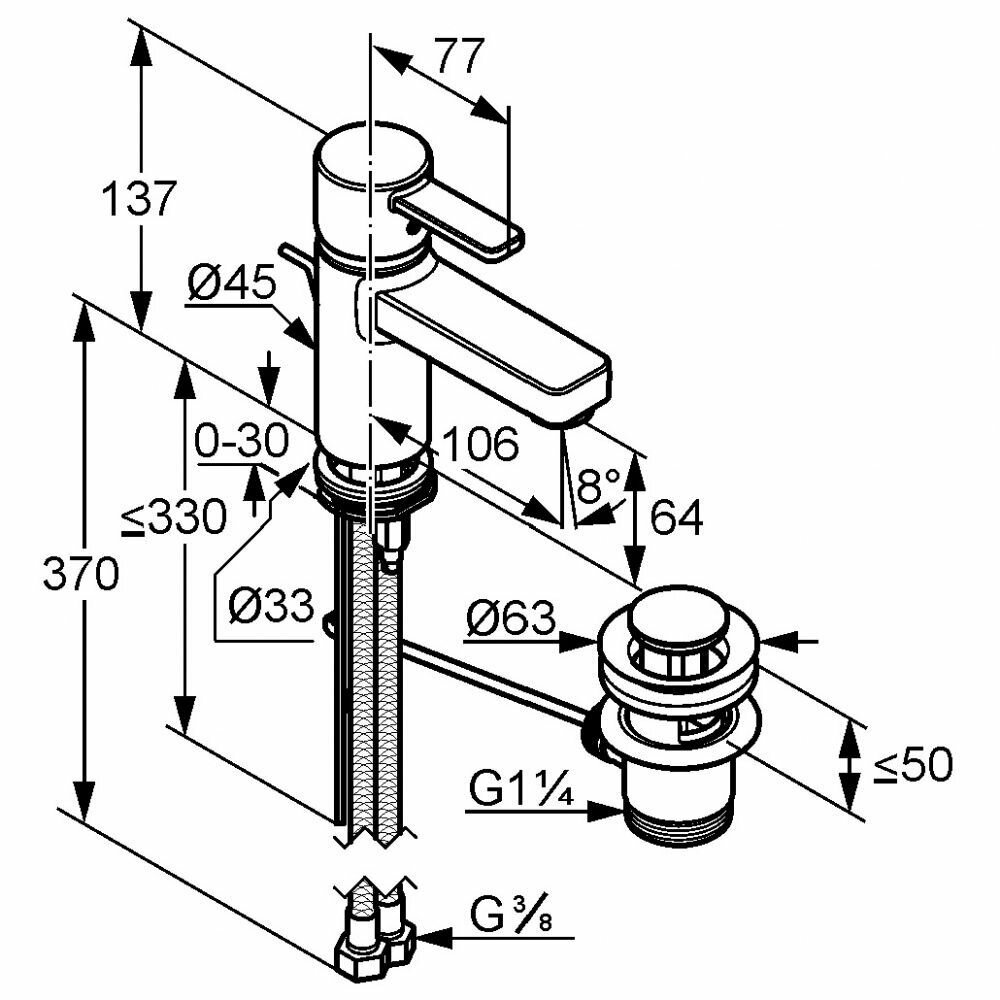 Смеситель для раковины Kludi Zenta 64 с донным клапаном, хром (382500575)