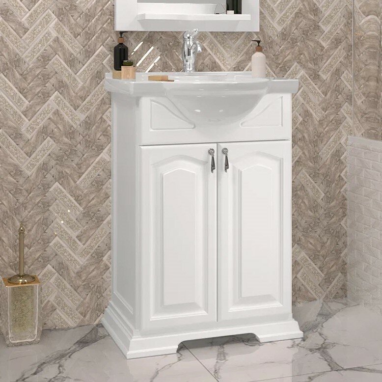 Тумба с раковиной для ванной Кристалл 50 белая.