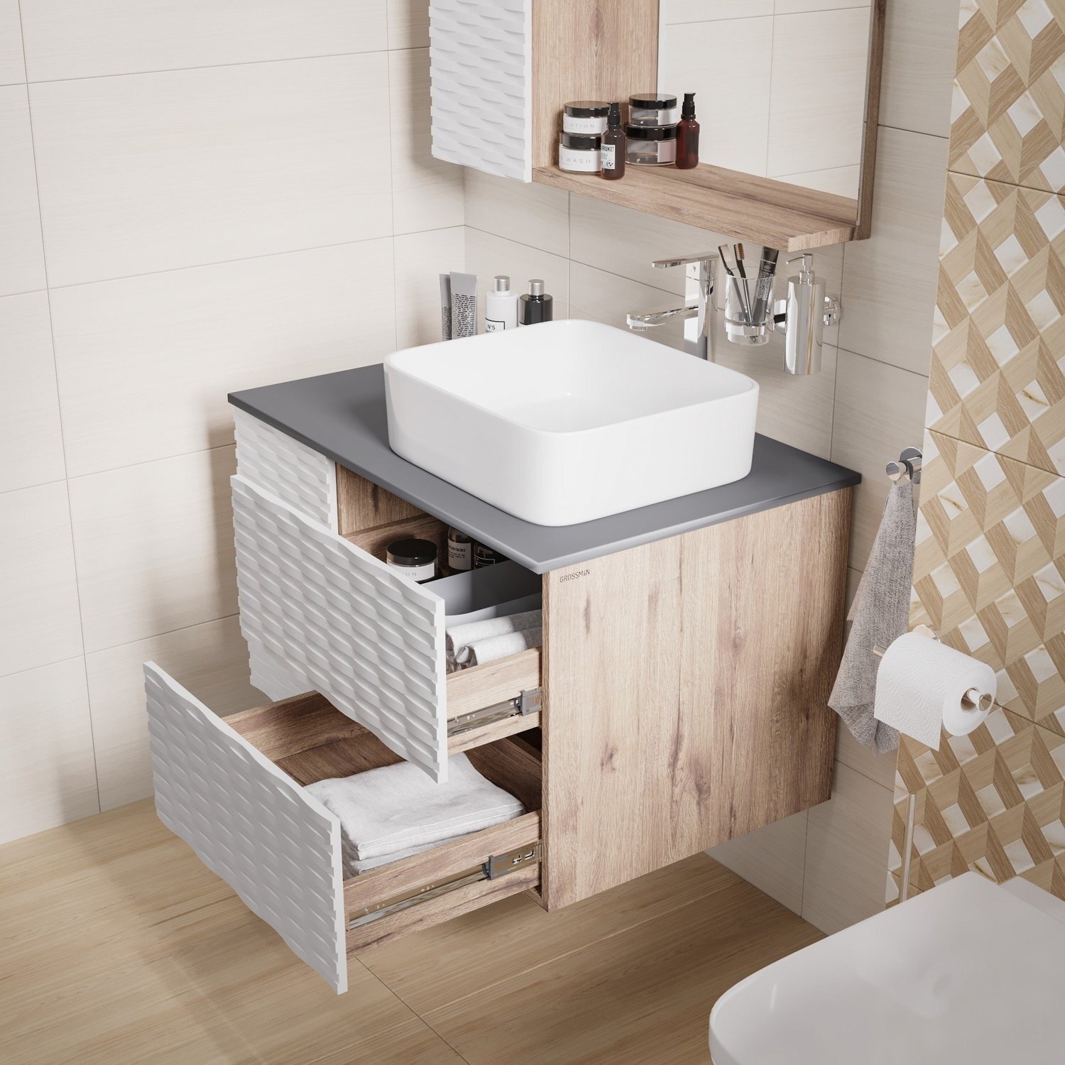Тумба под раковину GROSSMAN "АЛЬБА-80 см" с 2-я ящ. Веллингтон/белая 108011