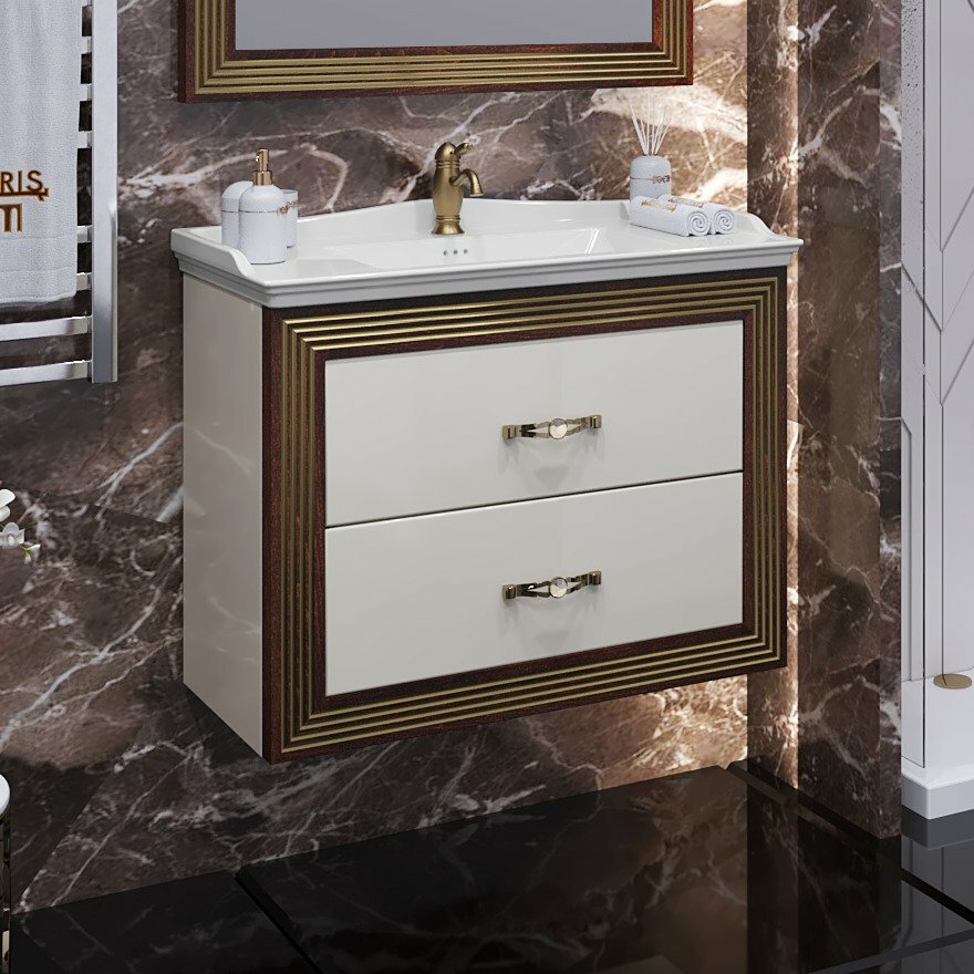 Тумба с раковиной Опадирис Карат 80 бежевая/золото