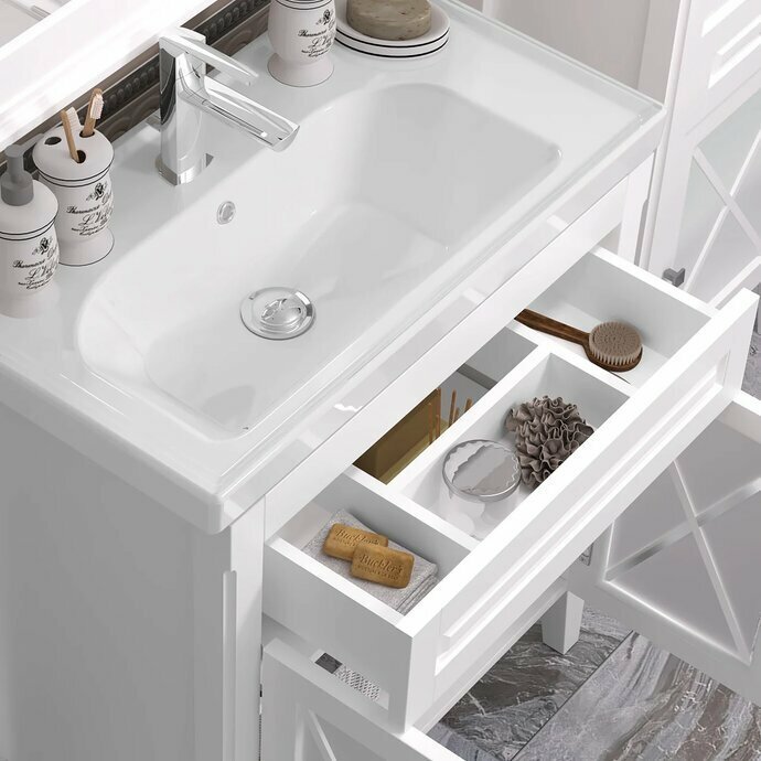 Тумба с раковиной для ванной Кристалл 50 белая.