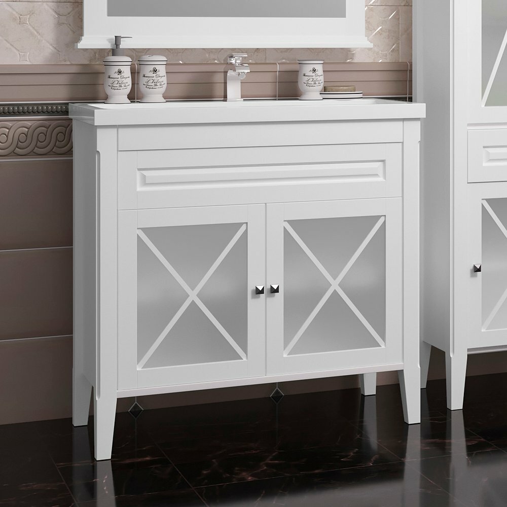 Тумба с раковиной для ванной Кристалл 50 белая.