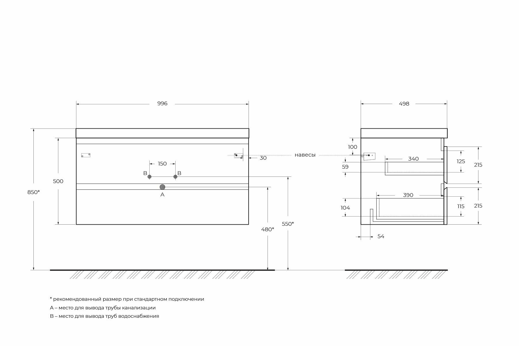СохранитьCezares MOLVENO База под раковину подвесная с двумя выкатными ящиками, Legno Grigio 100х50х50, MOLVENO-100-2C-SO-LG интересное: