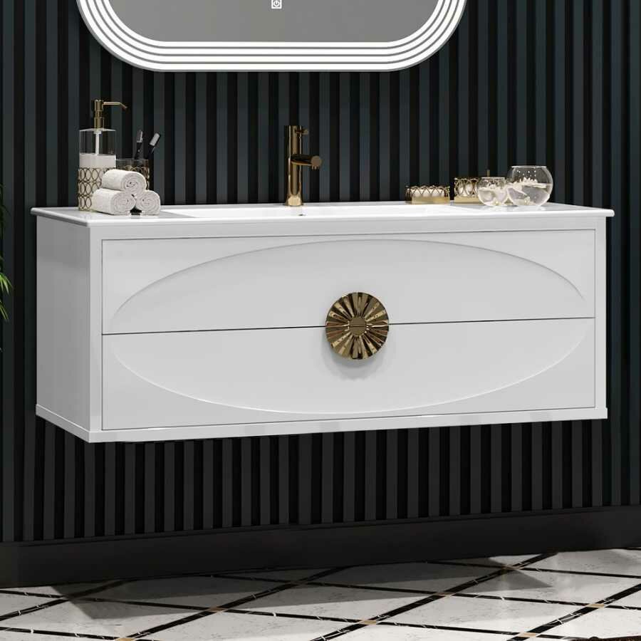 Купить Тумба с раковиной Opadiris Ибица 120 подвесная, фурнитура золото