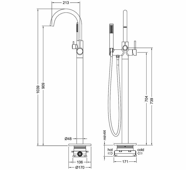 Saona Смеситель напольный для ванны с душем, 2310/18Y-CR