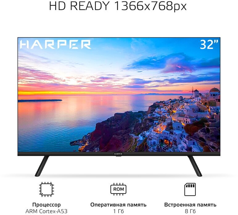 Телевизор Harper 32R720TS / Smart TV / Wi-Fi / диагональ 32" / 60 Гц / HD, черный