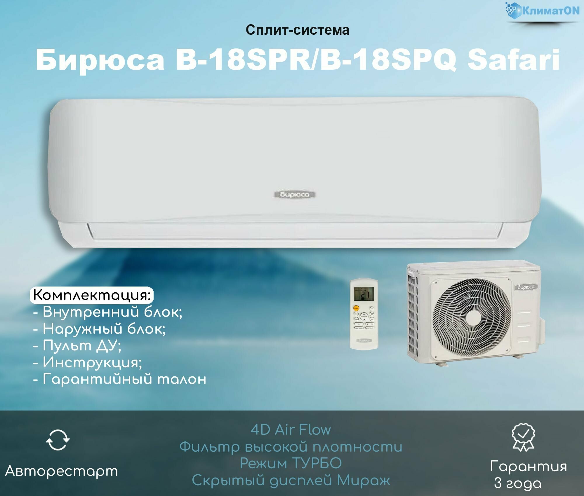 Сплит-система настенная Бирюса B-18SPR/B-18SPQ Safari on/off