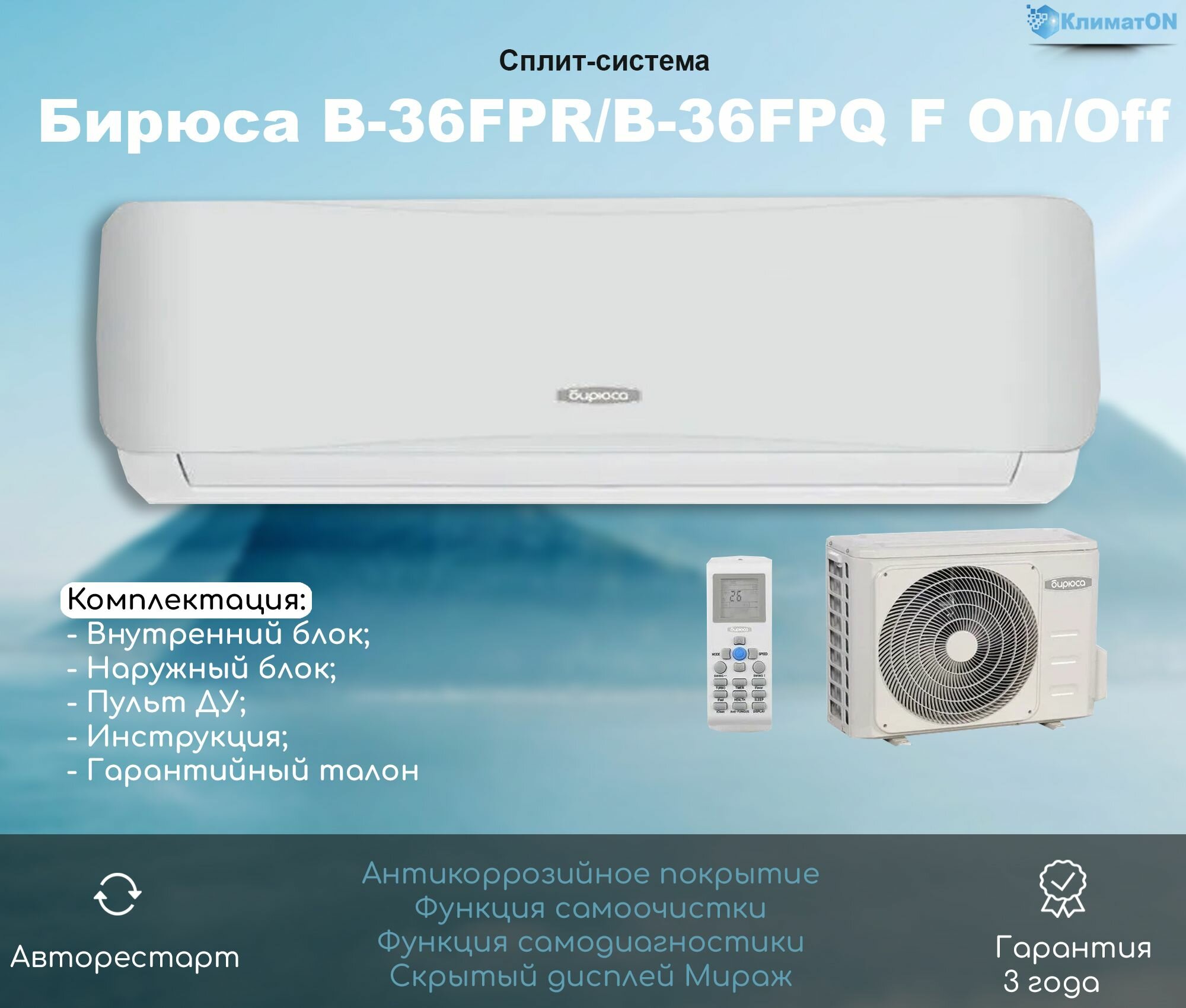 Сплит-система настенная Бирюса B-36FPR/B-36FPQ F on/off интересное: