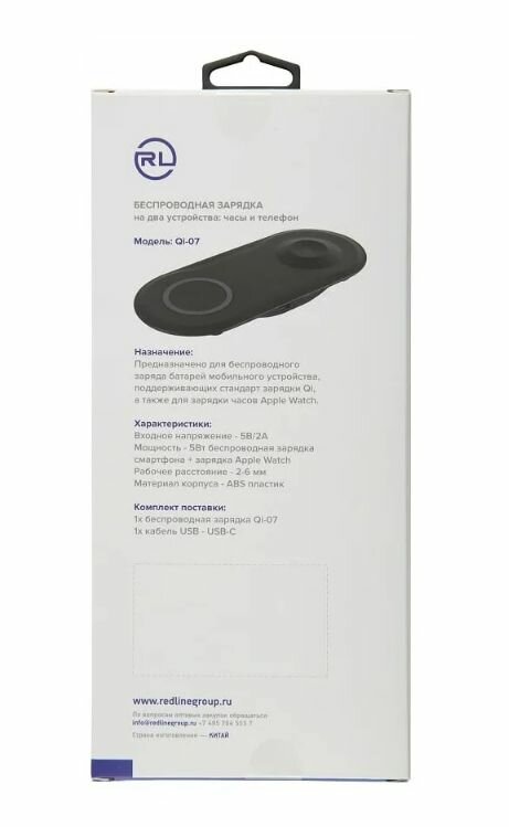 Беспроводная зарядка Red Line Qi-07 на два устройства (часы и телефон), черный