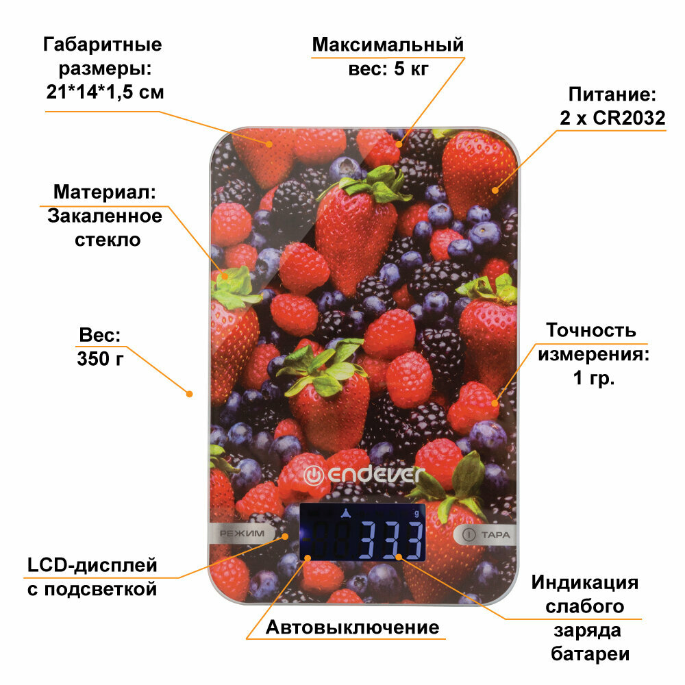 Весы кухонные электронные Endever KS-528 / рисунок Ягоды / от 2г до 5кг