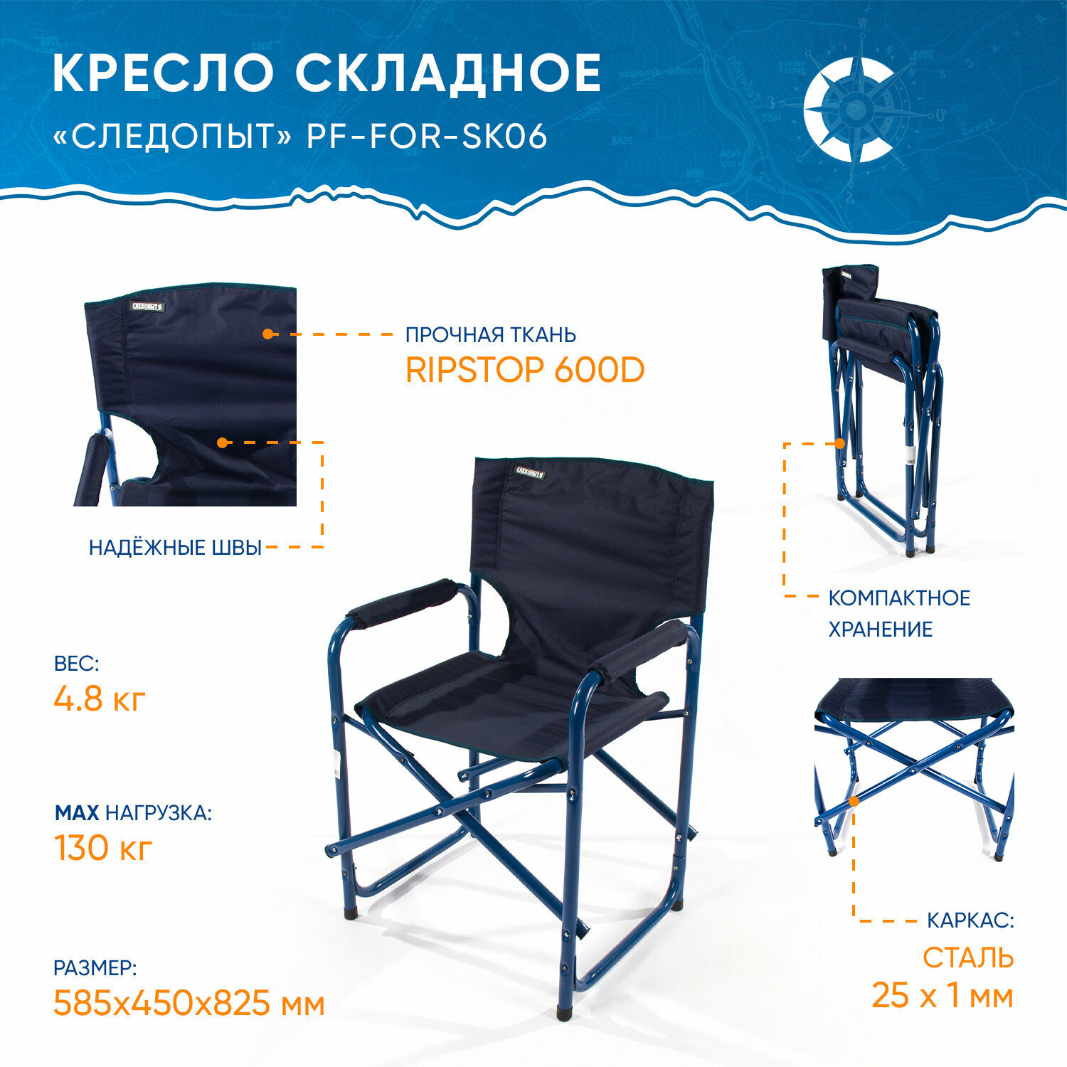 Кресло складное "следопыт" 585х450х825 мм, сталь 25 мм, синий интересное: