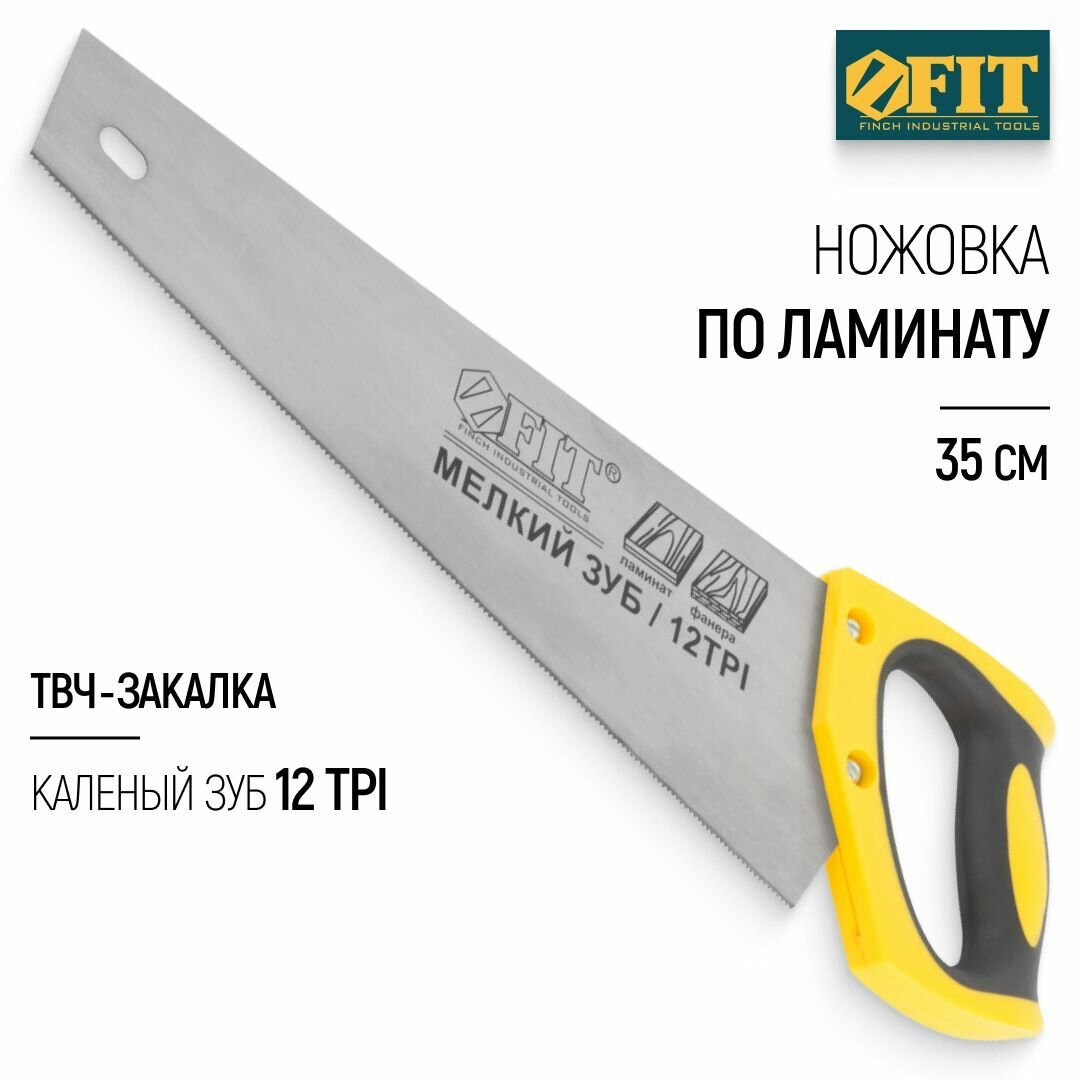 Ножовка по ламинату, мелкий каленый зуб 12 ТPI (шаг 2 мм), заточка, пласт.прорезиненная ручка 350 мм FIT 40478
