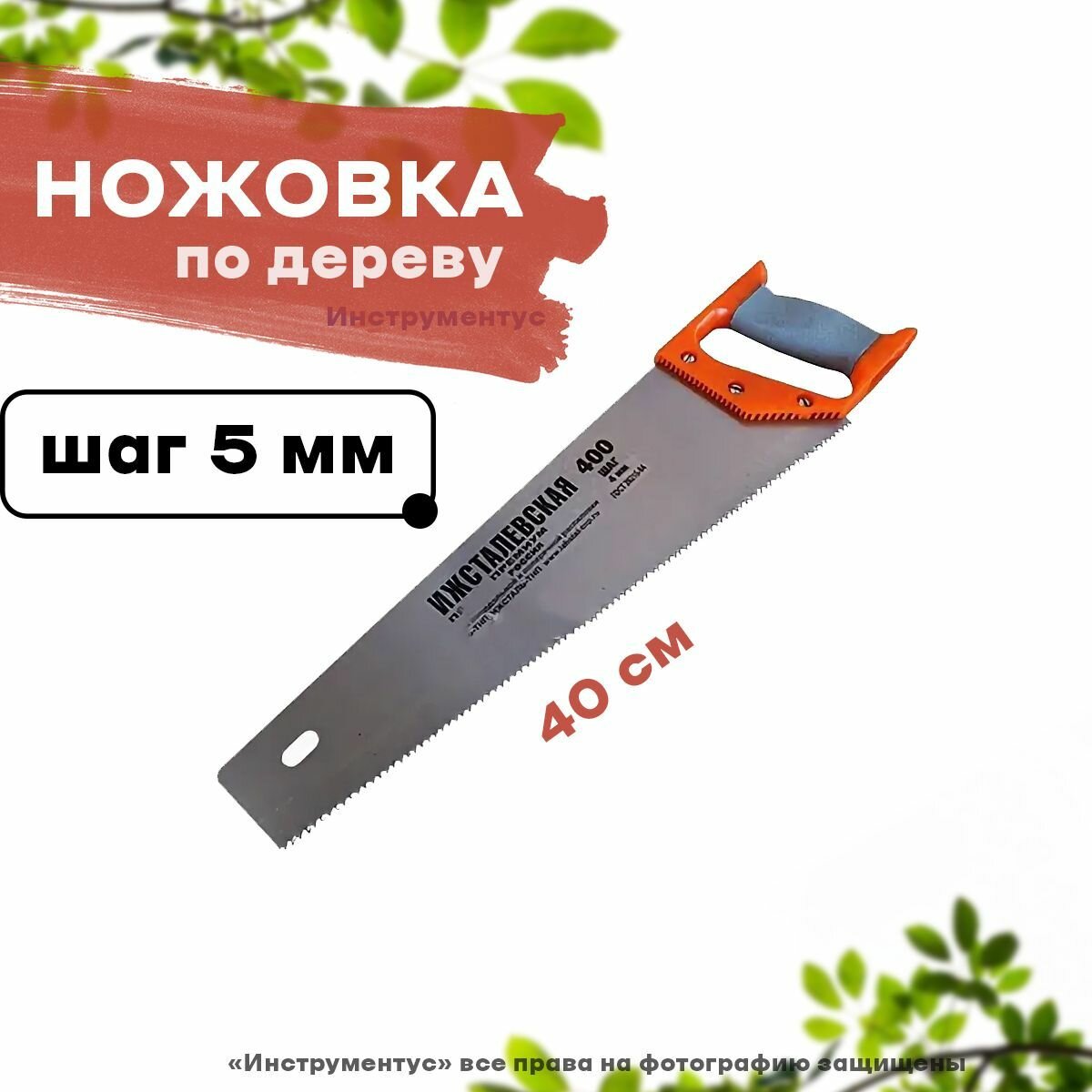 RUSSIA Ножовка по дереву, 400 мм, шаг зубьев 5 мм, пластиковая рукоятка (Ижевск) Россия