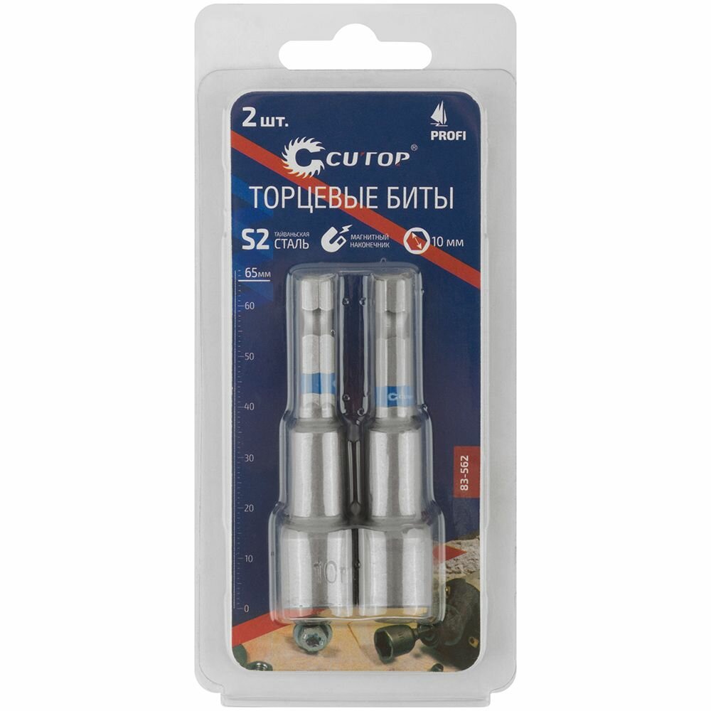 Набор бит с торцевыми магнитными головками 10 мм, 2 шт., CUTOP Profi, 65 мм 83-562