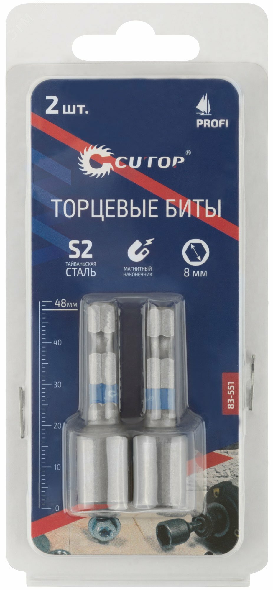 Набор бит с торцевыми магнитными головками 8 мм, 2 шт., CUTOP Profi, 48 мм (83-551)