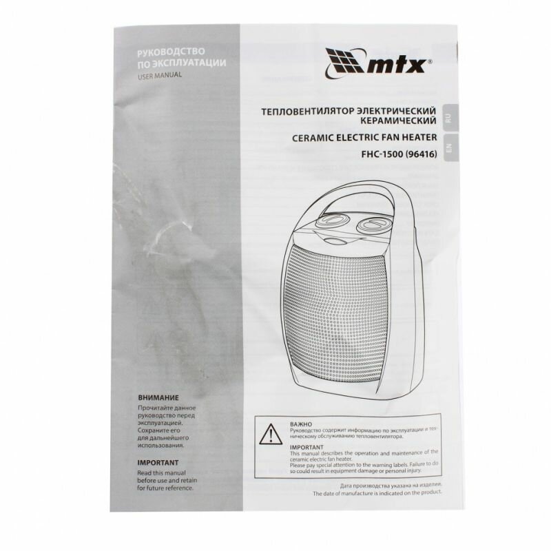 Тепловентилятор электр. керамический MTX FHC-1500, 3 реж, вентилятор, нагрев 750/1500 Вт 96416