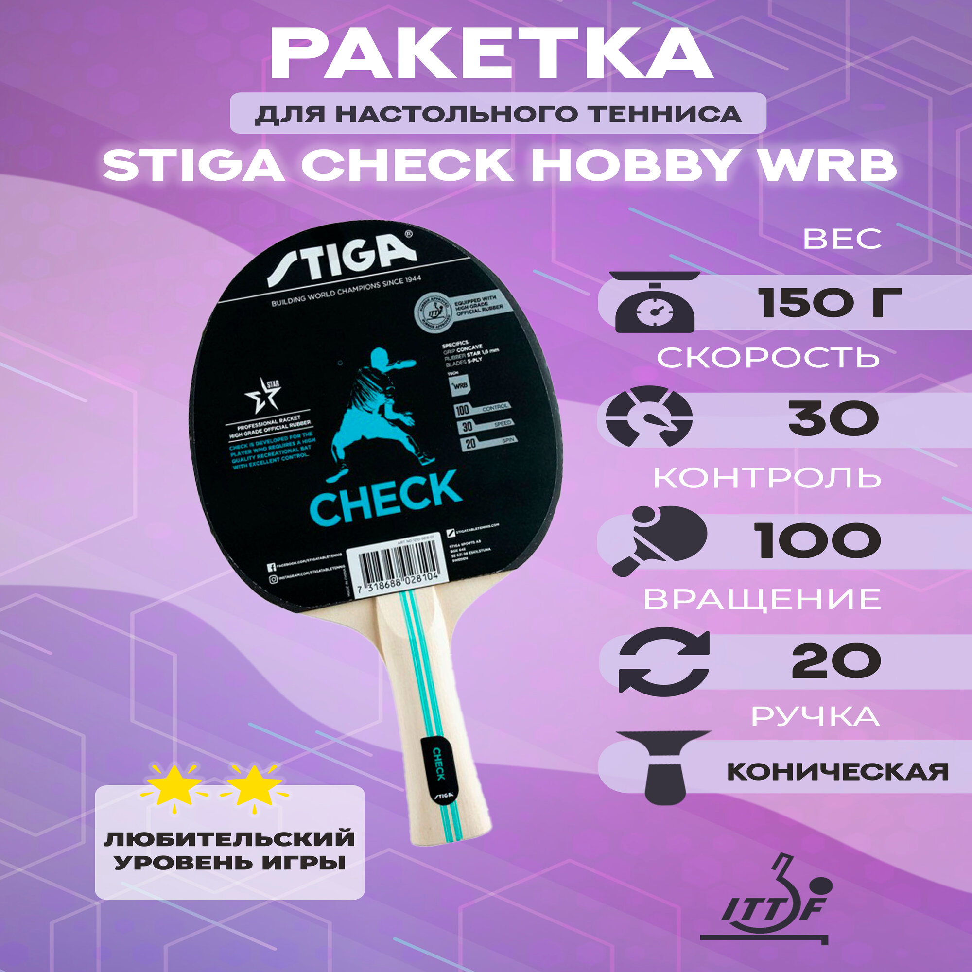 Ракетка для настольного тенниса Stiga Check Hobby WRB, арт.1210-5818-01, для начин., нак. 1,6 мм ITTF, конич. ручка интересное: