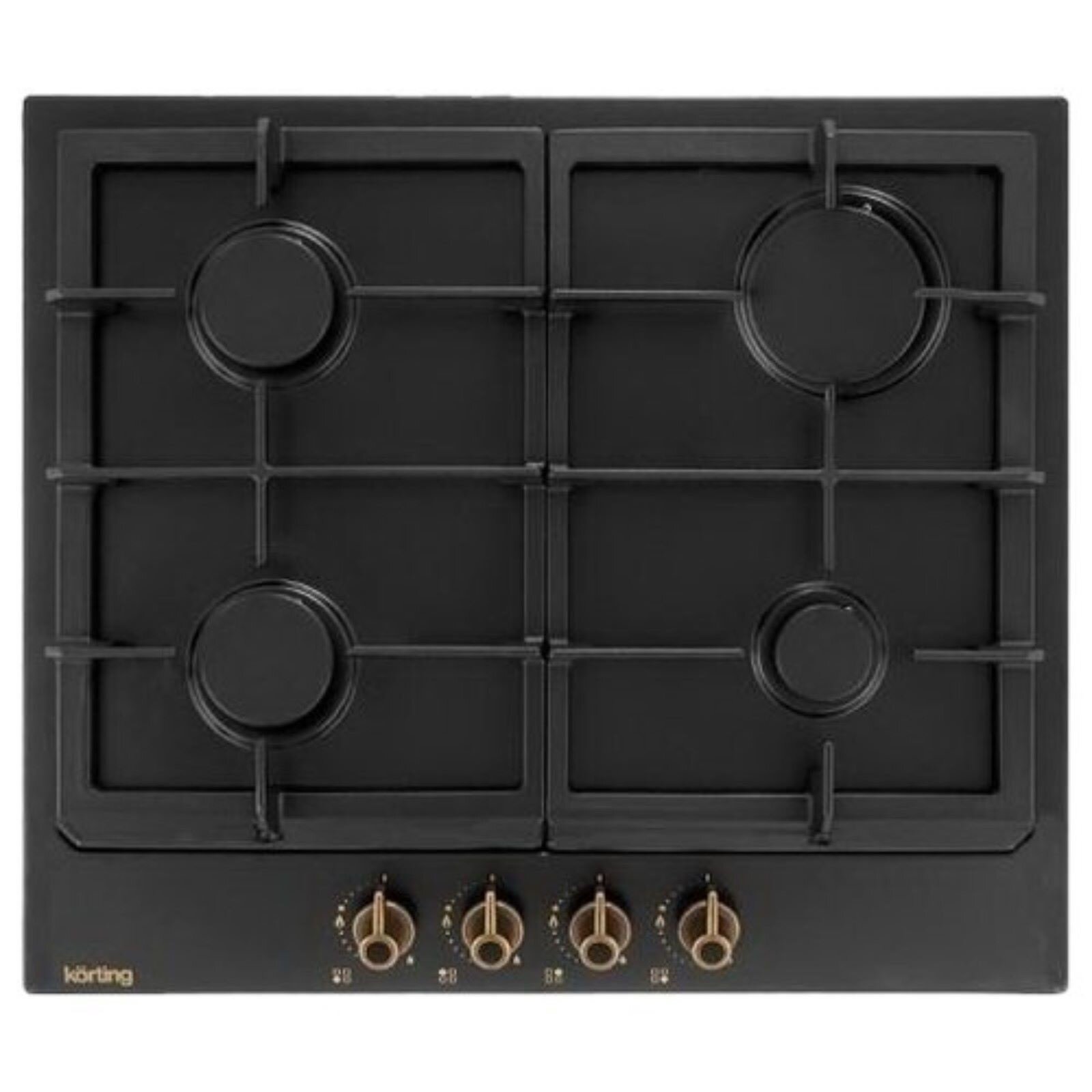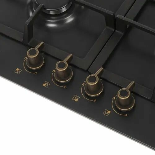 Встраиваемые газовые панели Korting/ Газ, Retro Calabria, 60x51 см, газовая, независимая, электроподжиг, газ-контроль, чугунные решетки, черная, цвет ручек-бронза