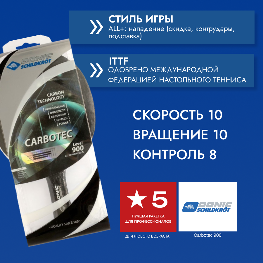 Купить Ракетка для настольного тенниса Carbotec 900, carbon