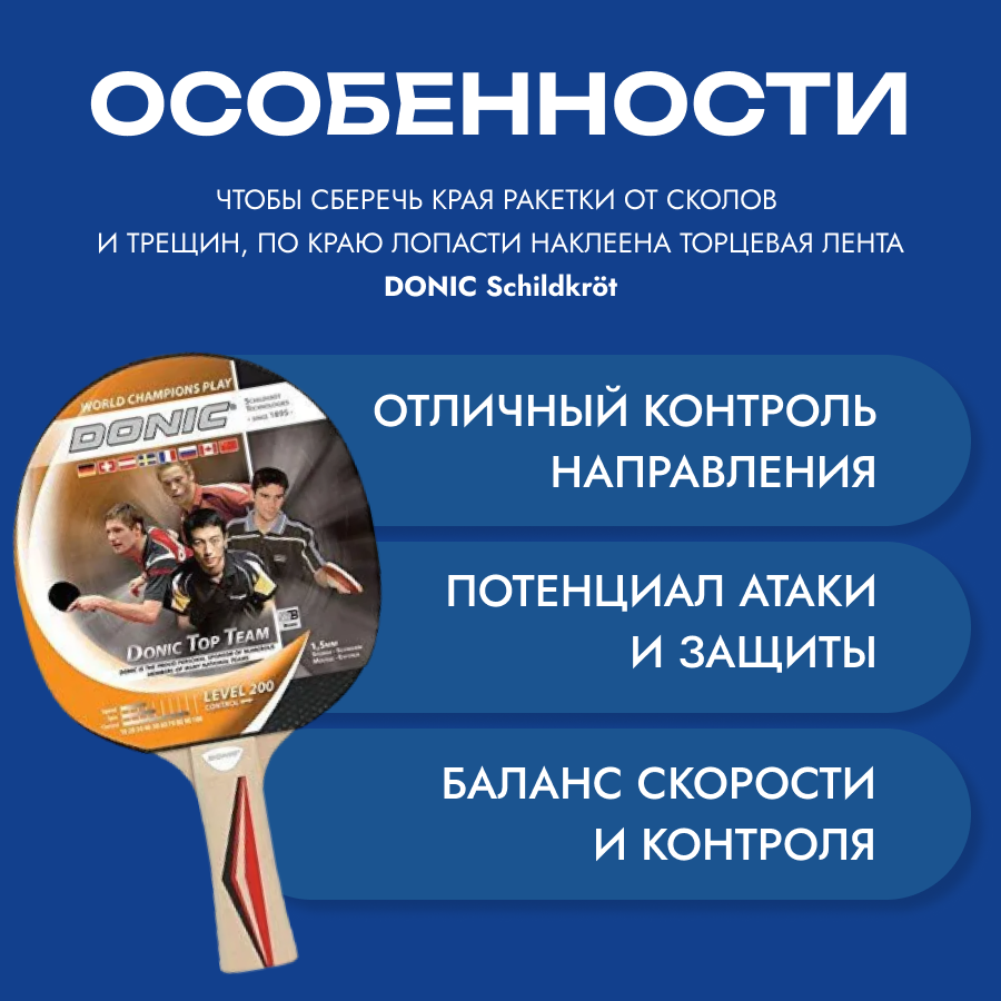 Ракетка для настольного тенниса Donic Schildkrot Top Team 200 интересное: