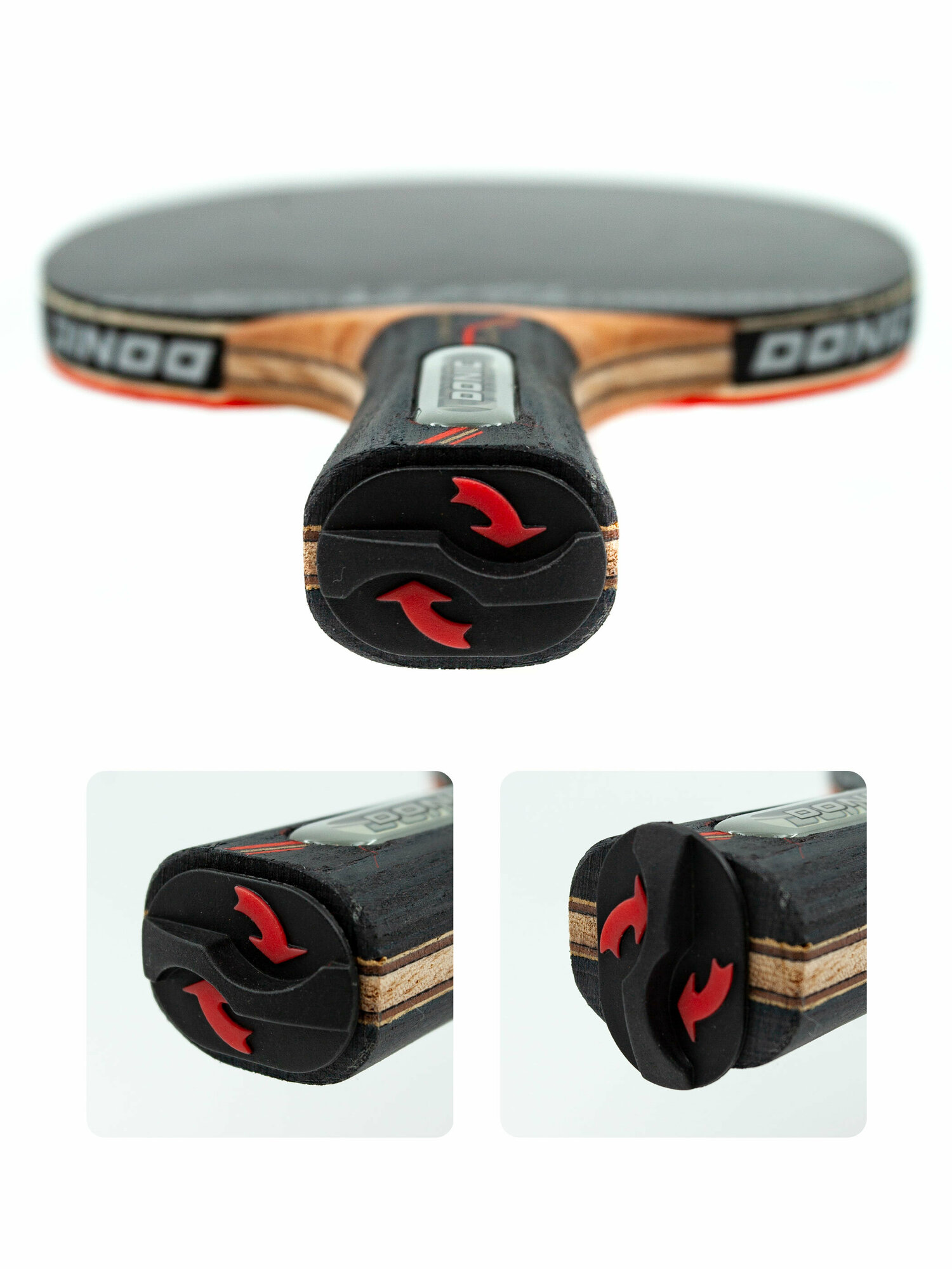 | Минусы: | Постепенно образовался воздушный пузырь на черной накладке. Попытался снять наклеить заново, но растянул резину. Сейчас планирую наклеить другие накладки, так как рукоятка нравится. |