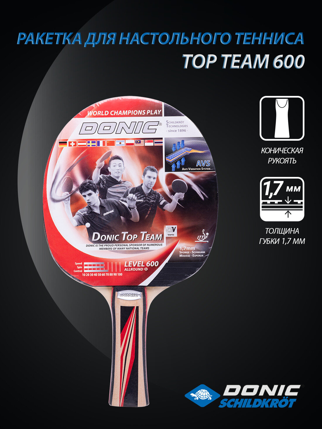 Ниже Вы можете прочитать отзывы на Ракетка для настольного тенниса Donic Top Team 600, ознакомится с подробными характеристиками, посмотреть интересные обзоры и фотографии на Ракетка для настольного тенниса Donic Top Team 600.