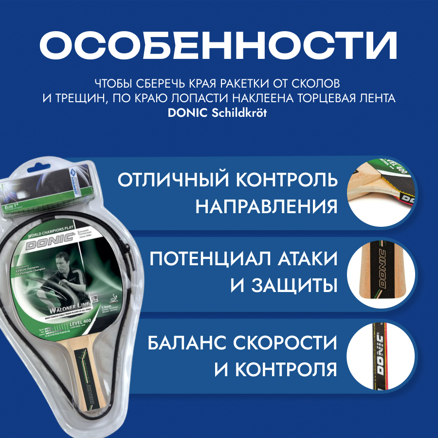 Набор для настольного тенниса DONIC Waldner 400 (1 ракетка, 3 мячика Elite 1*, чехол) интересное: