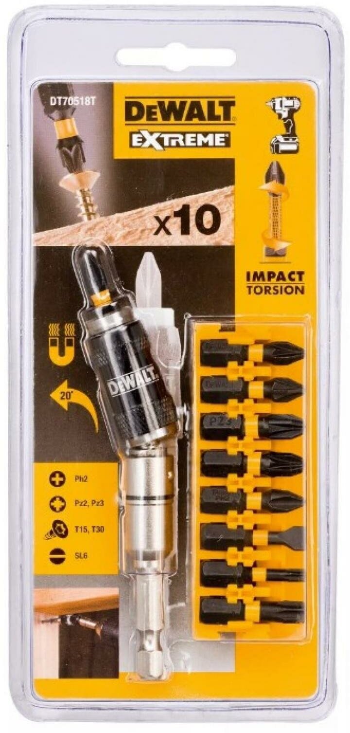 Набор бит DEWALT DT70518T, 25 мм, EXTREME IMPACT TORSION с шарнирным держателем насадок, 10 предметов интересное: