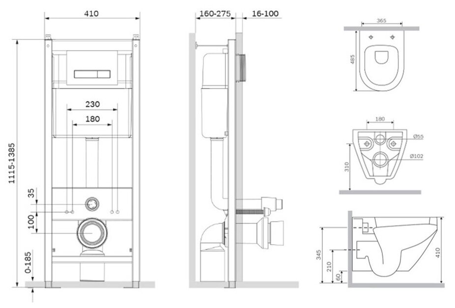Комплект инсталляции с унитазом Am.Pm Spirit IS30201.701700 белый с сиденьем микролифт