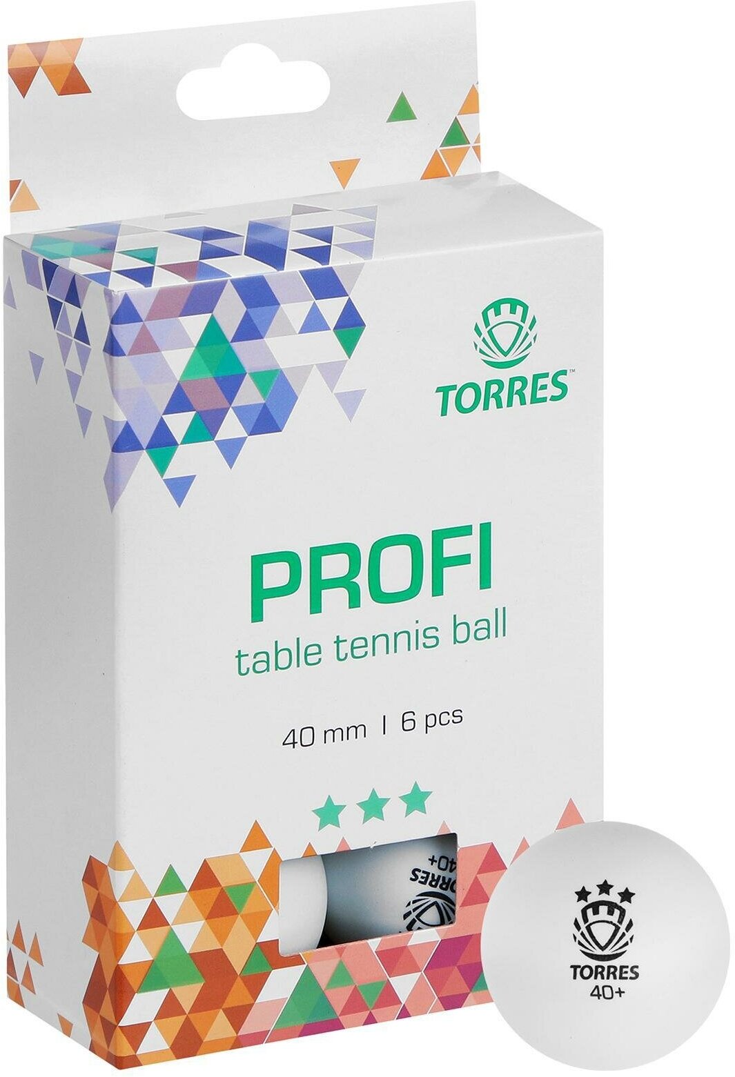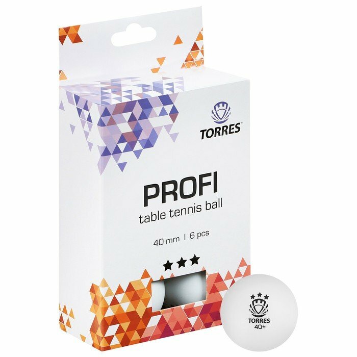 Мяч для настольного тенниса TORRES Profi, 3 звезды, 40 мм, 6 шт., цвет белый (комплект из 3 шт)