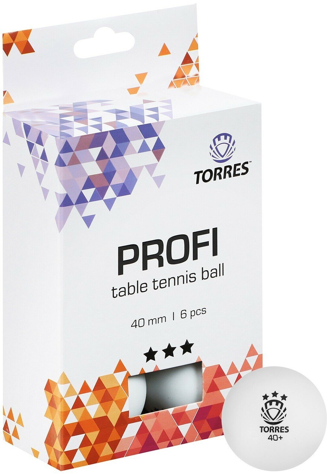 Купить Мяч для настольного тенниса Torres Profi, 3 звезды,40 мм, набор 6 шт., цвет белый