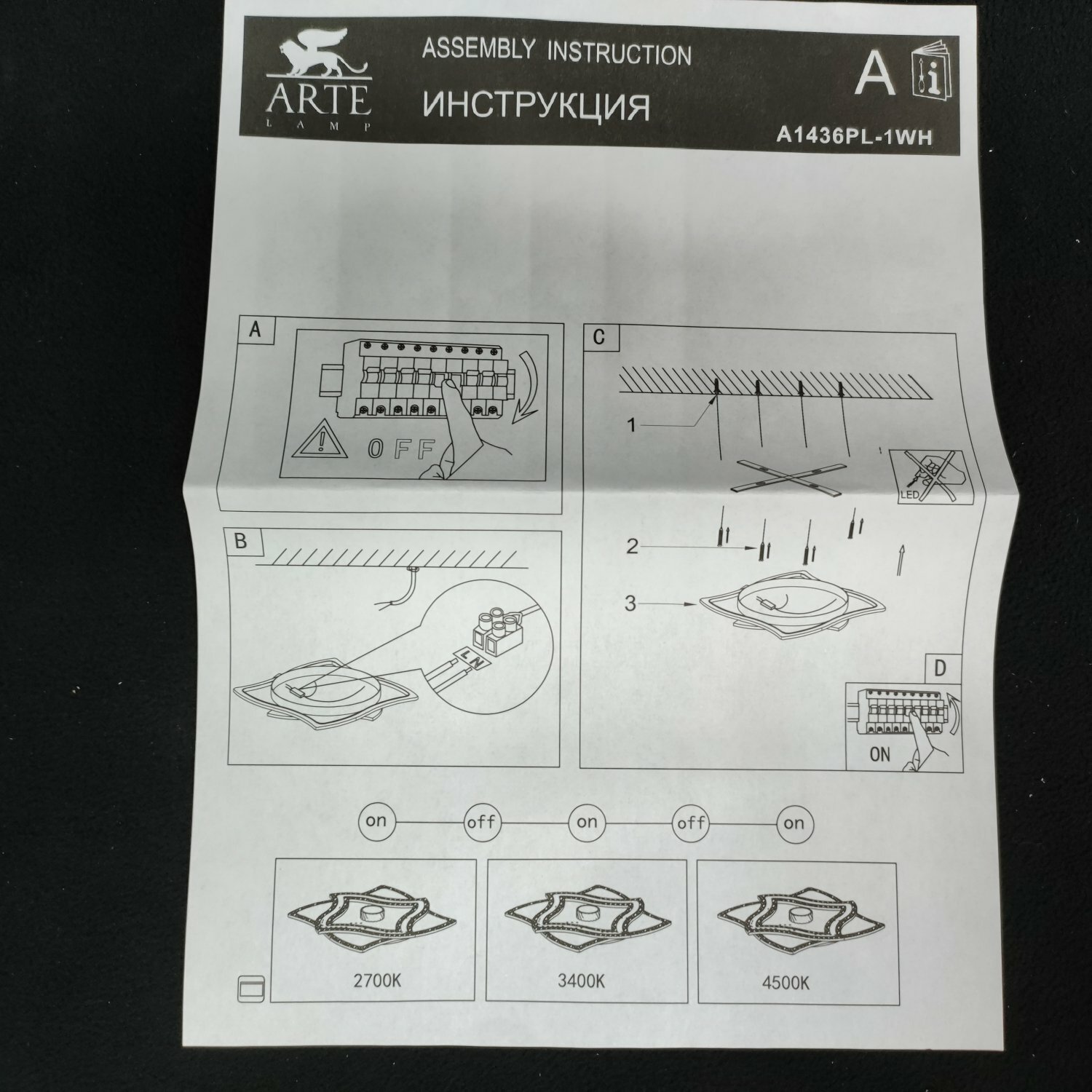 | Дополнительная информация | изменение цветовой температуры (2700-4500) K |